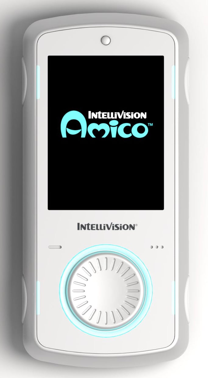 This philosophy extends to the Amico controller too, which looks more like a mobile phone with its large colour touchscreen, but also includes a large circular directional pad and contains other features like force feedback and LED lighting.