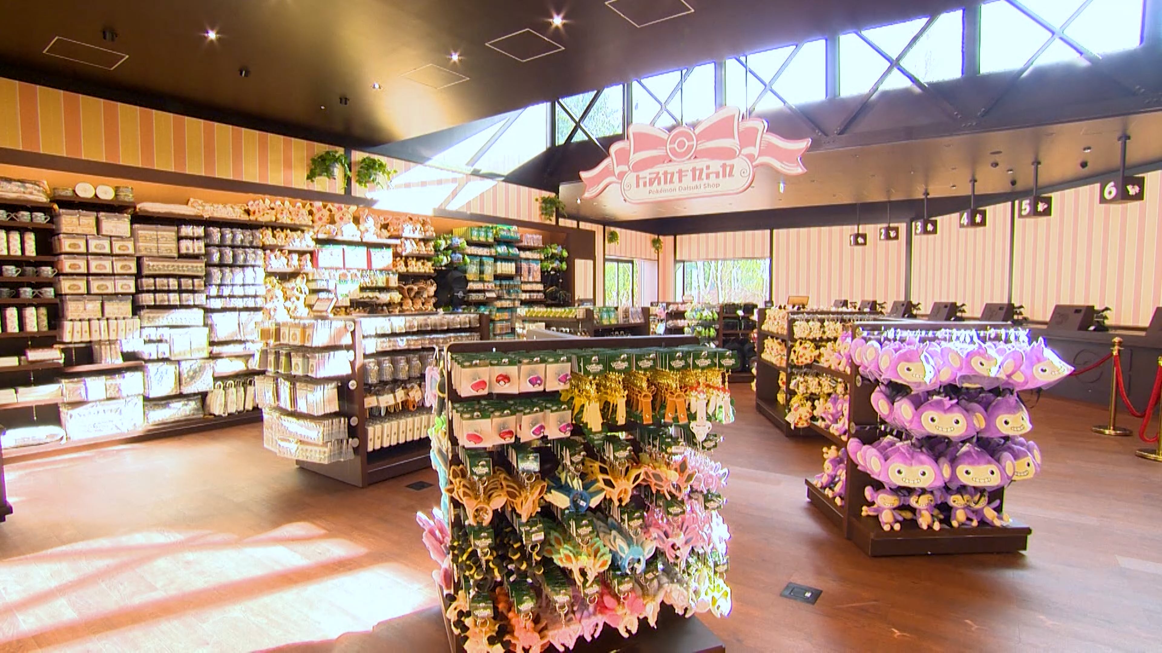 Theme park fans love merchandise. Pokémon fans love merchandise. We’re happy to report that the first wave of merchandise available at PokéPark Kanto will please both. The shop, which is large enough but honestly could be the size of the greater Tokyo area and still be busy, offers plush, t-shirts, candy, themed hats, wearable Pokémon ears, clear files, and more.
