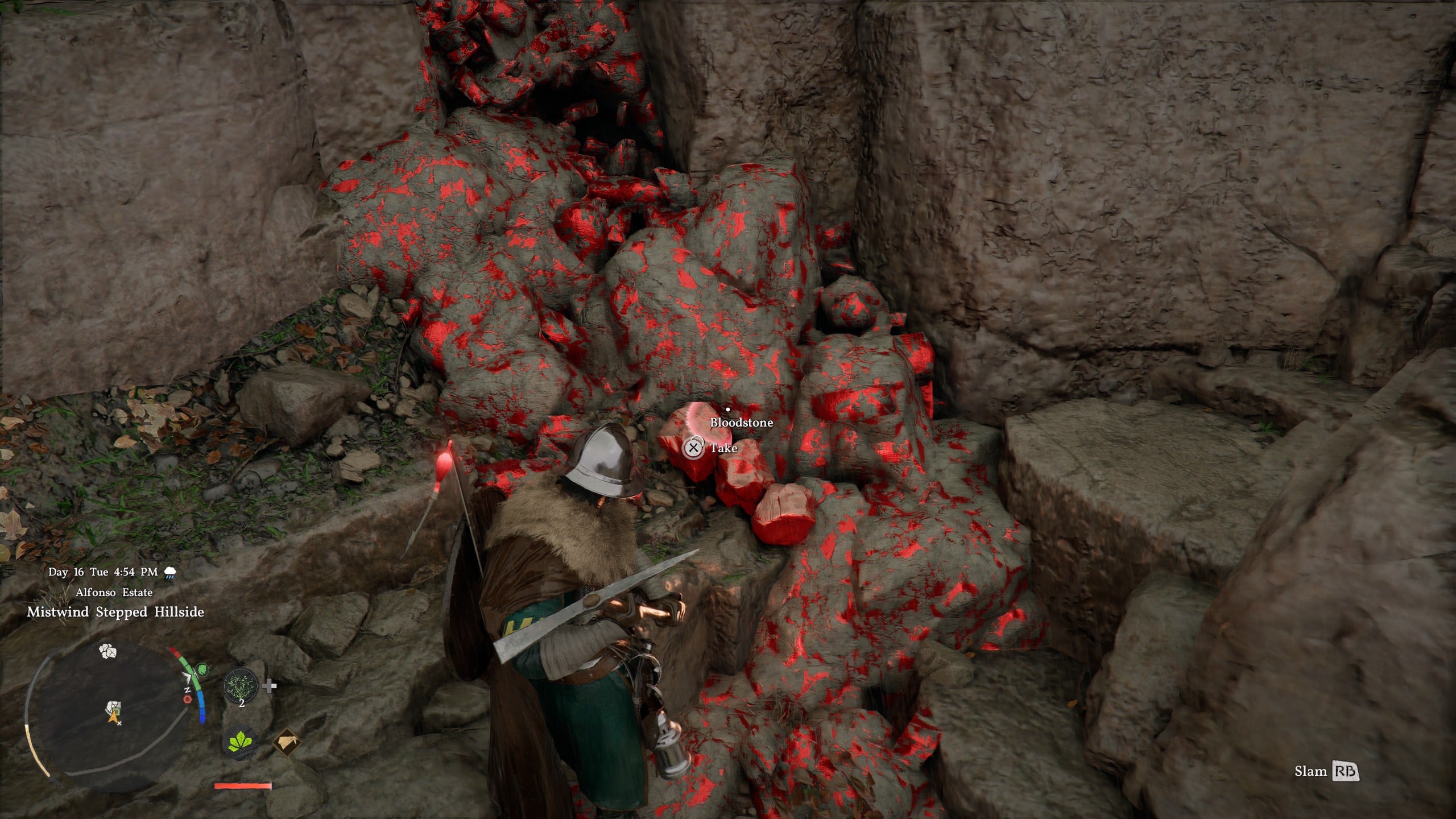 Three Bloodstone veins you can find and mine close to the starting city of Hernand in Crimson Desert.