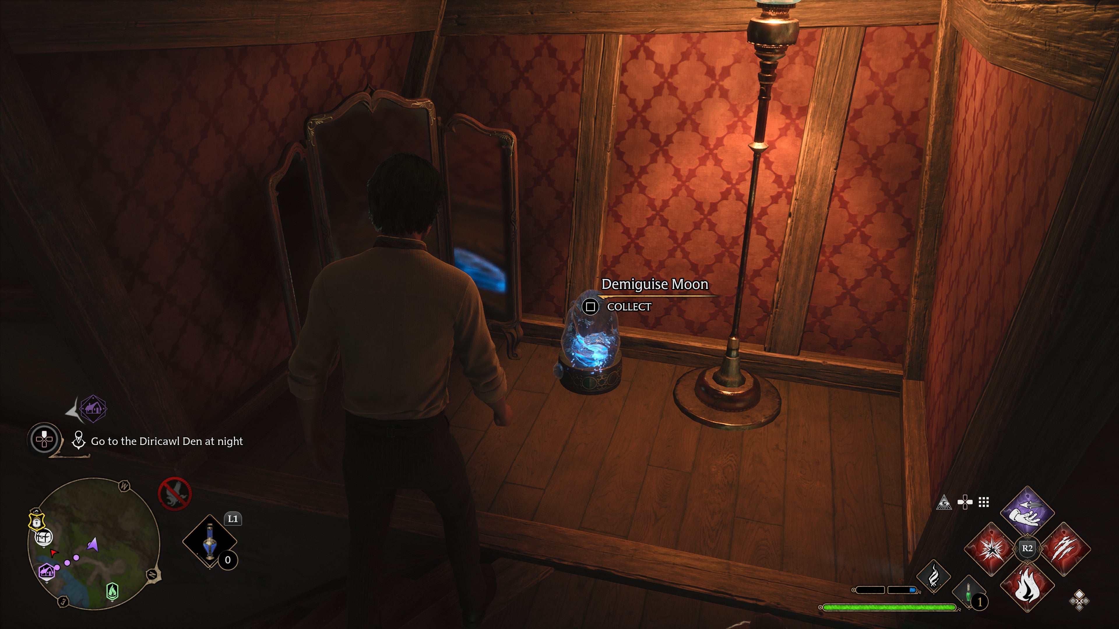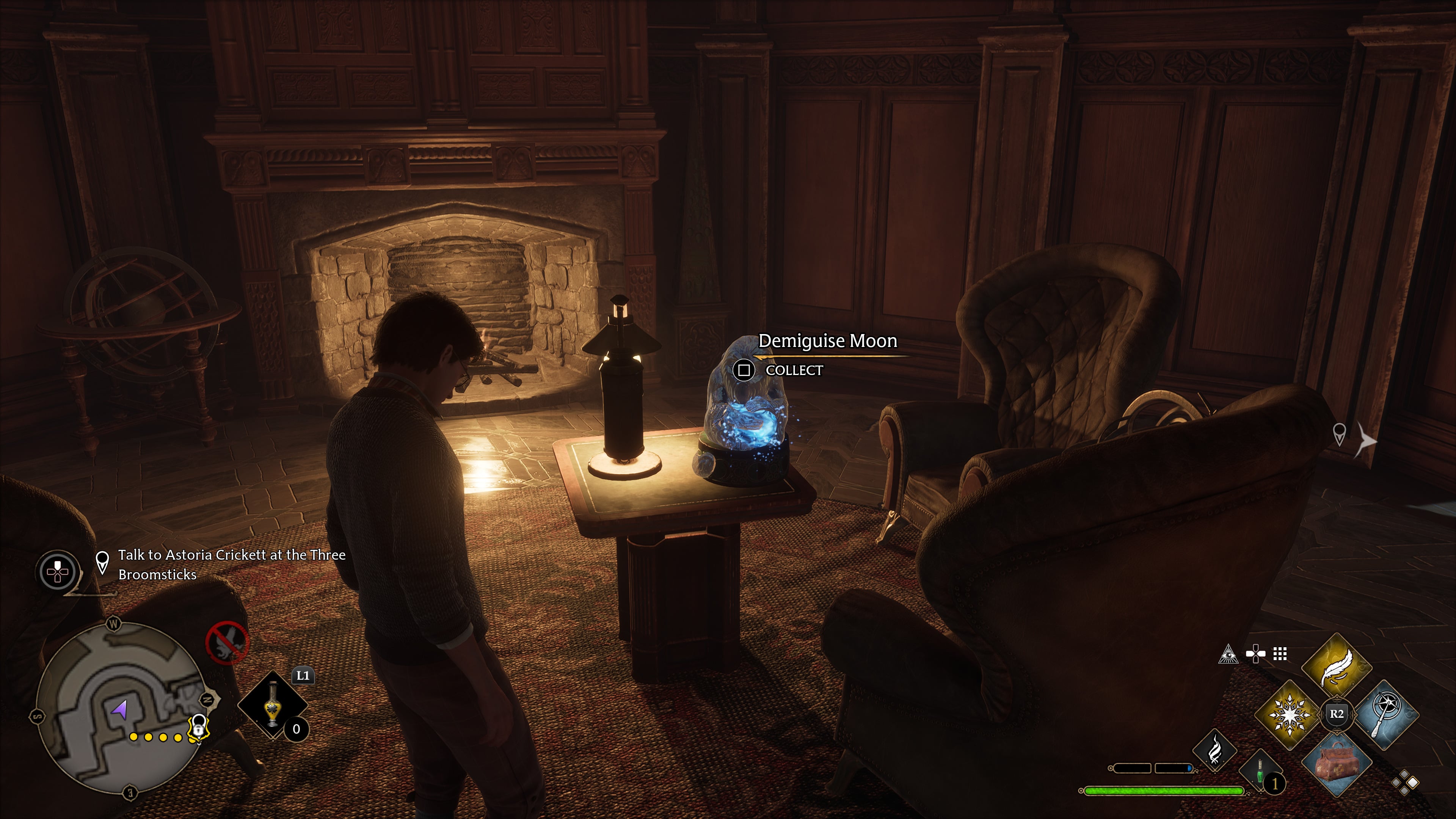 You’ll be forced to collect three Demiguise Statues for Gladwin Moon by sneaking around the teacher’s wing. This mission can be completed by using the Disillusionment charm, which you’ll receive earlier in the game.