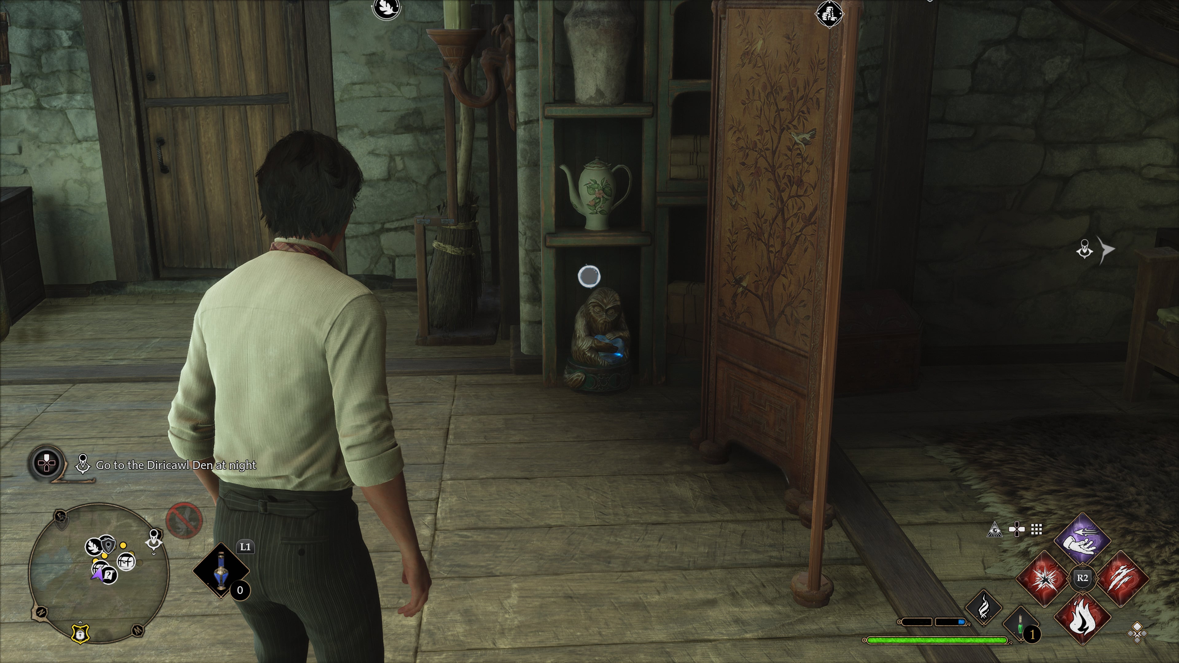 The next way to tell if you’re in the presence of a Demiguise statue that you’re unable to see is that the main character will shout out one of a few voice lines such as “Mine now, Demiguise,” if you’re in a house or a building that has a Demiguise in it.