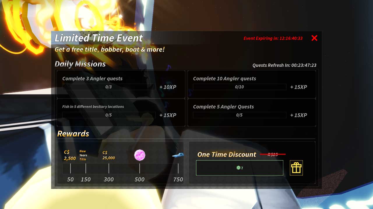 Added the day after the Grand Reef release, the limited time event is simply a battle pass with light objectives and decent rewards largely focused on Angler quests.