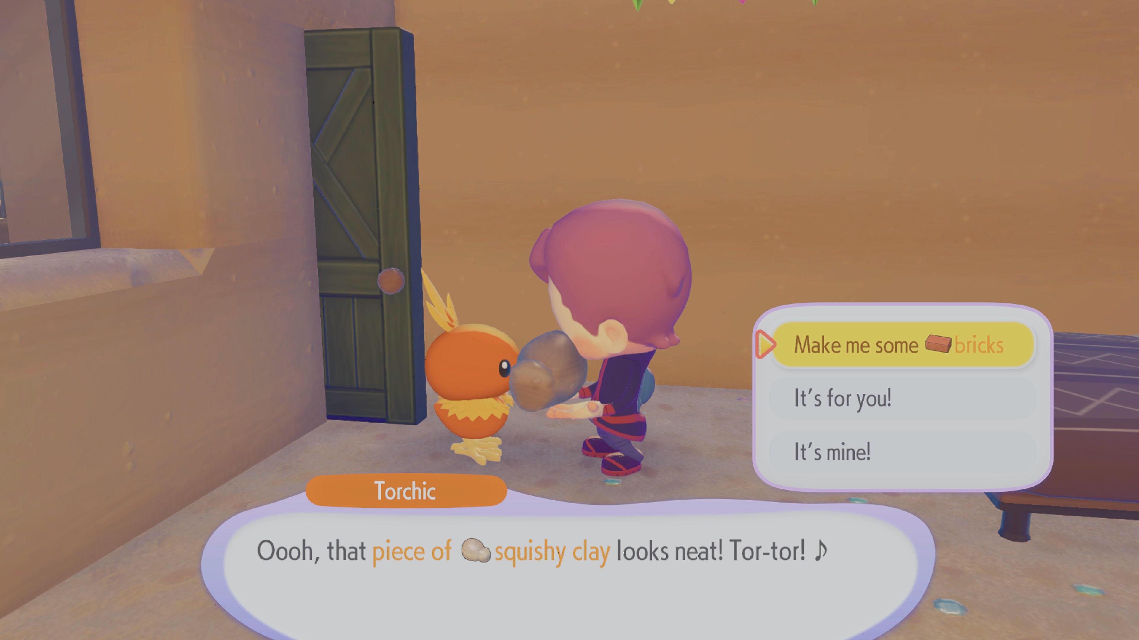 To get Bricks in Pokémon Pokopia, you need to give Squishy Clay to Torchic, or any Pokémon with the Burn speciality.