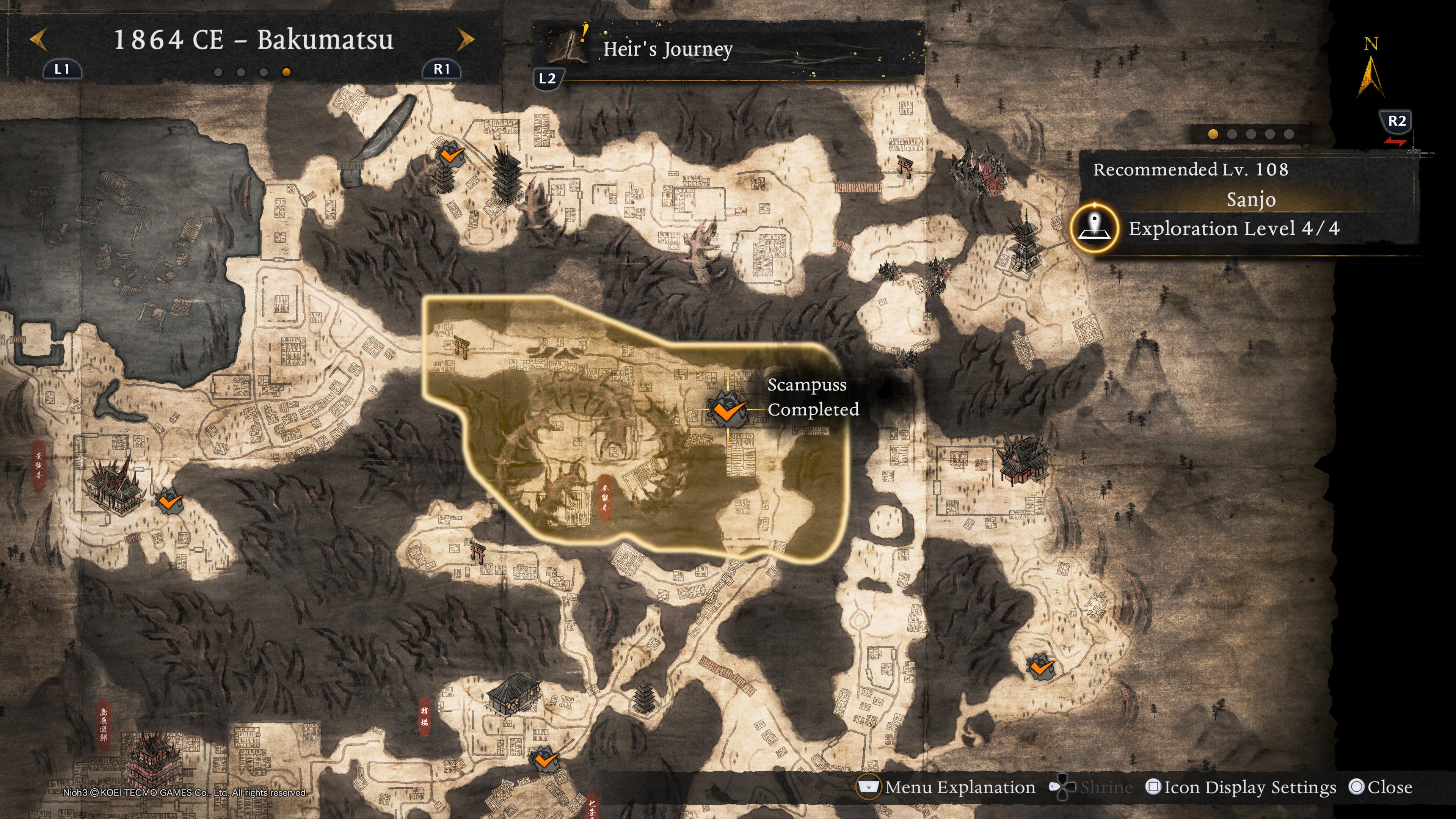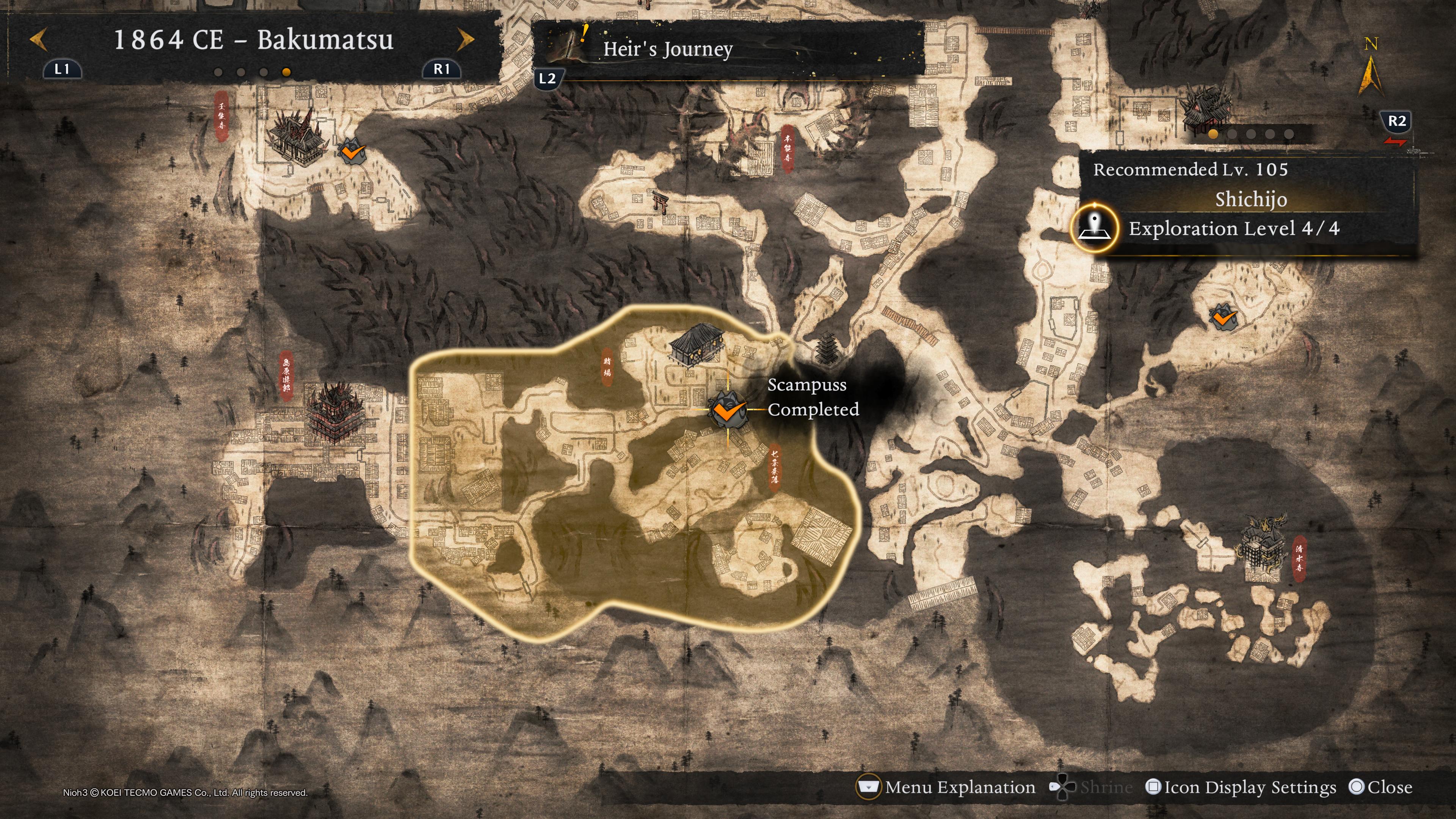 There are two Timid Scampuss in the game: one in the Heian era and another in the Bakumatsu era. Timid Scampuss require you to use stealth in order to approach them, and this will usually involve hiding in the tall grass as you follow them to their destination. You’ll know you’ve got a Timid Scampuss if it disappears with the phrase “It seems the Scampuss got away.”