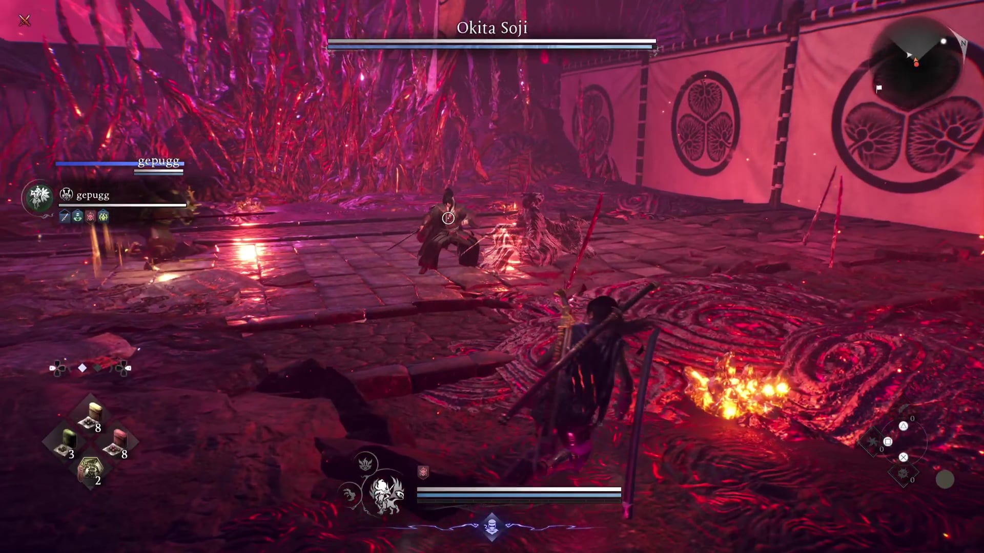 The boss of the Kyoto Imperial Palace Crucible, Tokugawa Yoshinobu, is tough and imposing enough alone, and you don’t want to waste your heals and abilities on Okita Soji first.