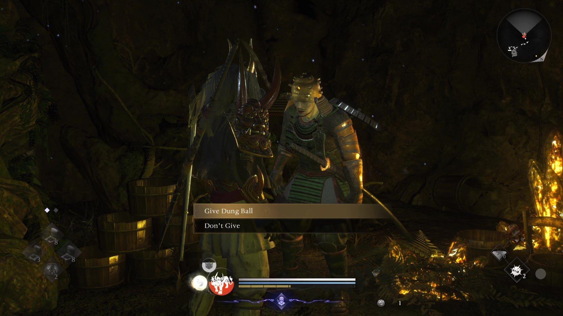 Tatsumaro is only interested in one thing: Dung. There are two types of Dung you can pick up in Nioh 3, and that’s Noble Dung and just Dung. What does he do with it all? I’d rather not know.