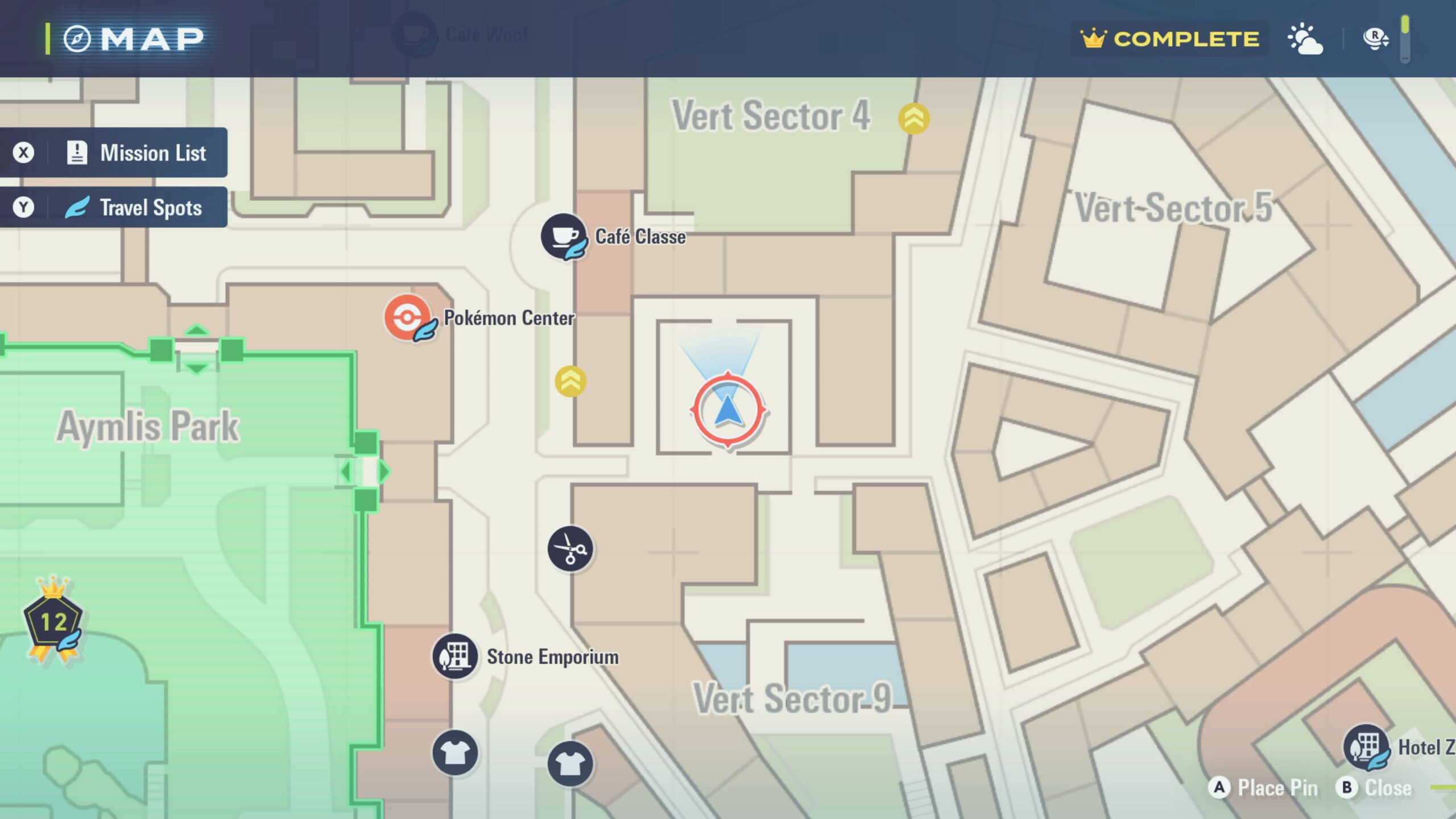 To put you out of your misery, the location you are looking for is in Vert Sector 9, near the Stone Emporium and the Pokémon Center.