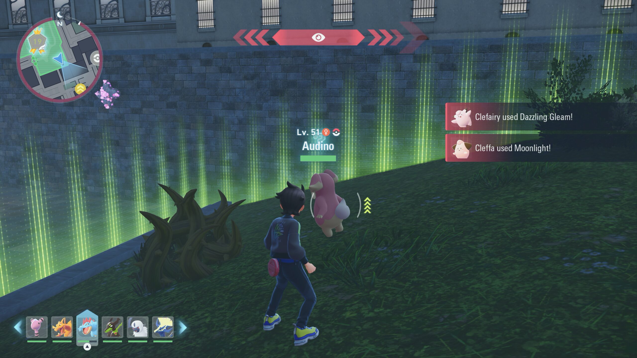 Cleafairy appears in the middle platform during the night, dancing around for the Moon, as you’d expect.
