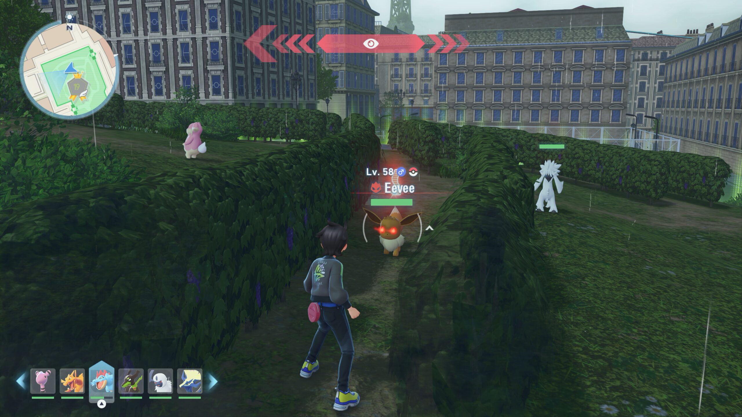 Eevee can be found as both an Alpha and a standard encounter in Wild Zone 19. As a standard encounter, it can be found during the day between the bushes, and will occasionally run when encountered. The Alpha, through rarer, won’t run.