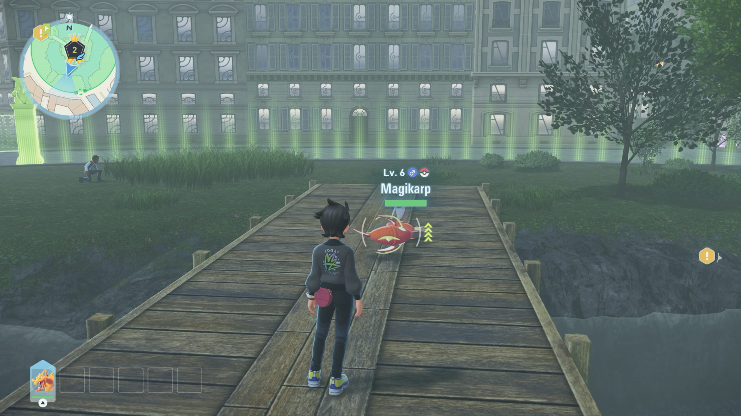 Magikarp will appear in the water during the day. It will also throw itself onto the bridge when you pass it. It’s virtually an instant catch.