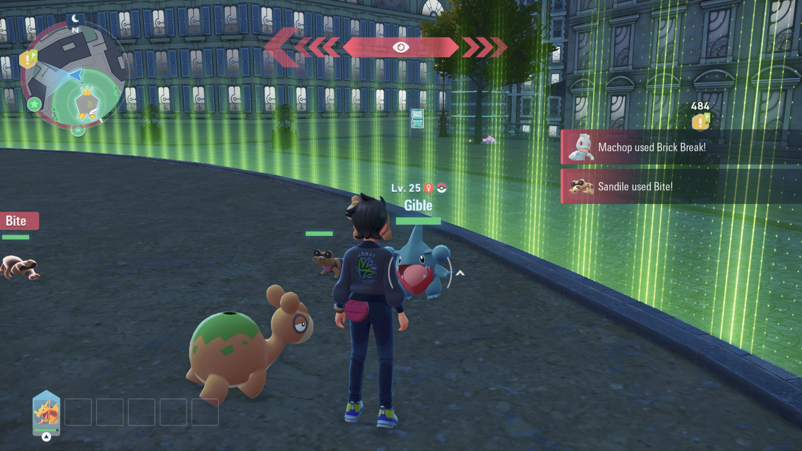 Gible is the rarest Pokémon in this area. It can be found at night, in the small dirt patches that also produce Drillbur encounters.