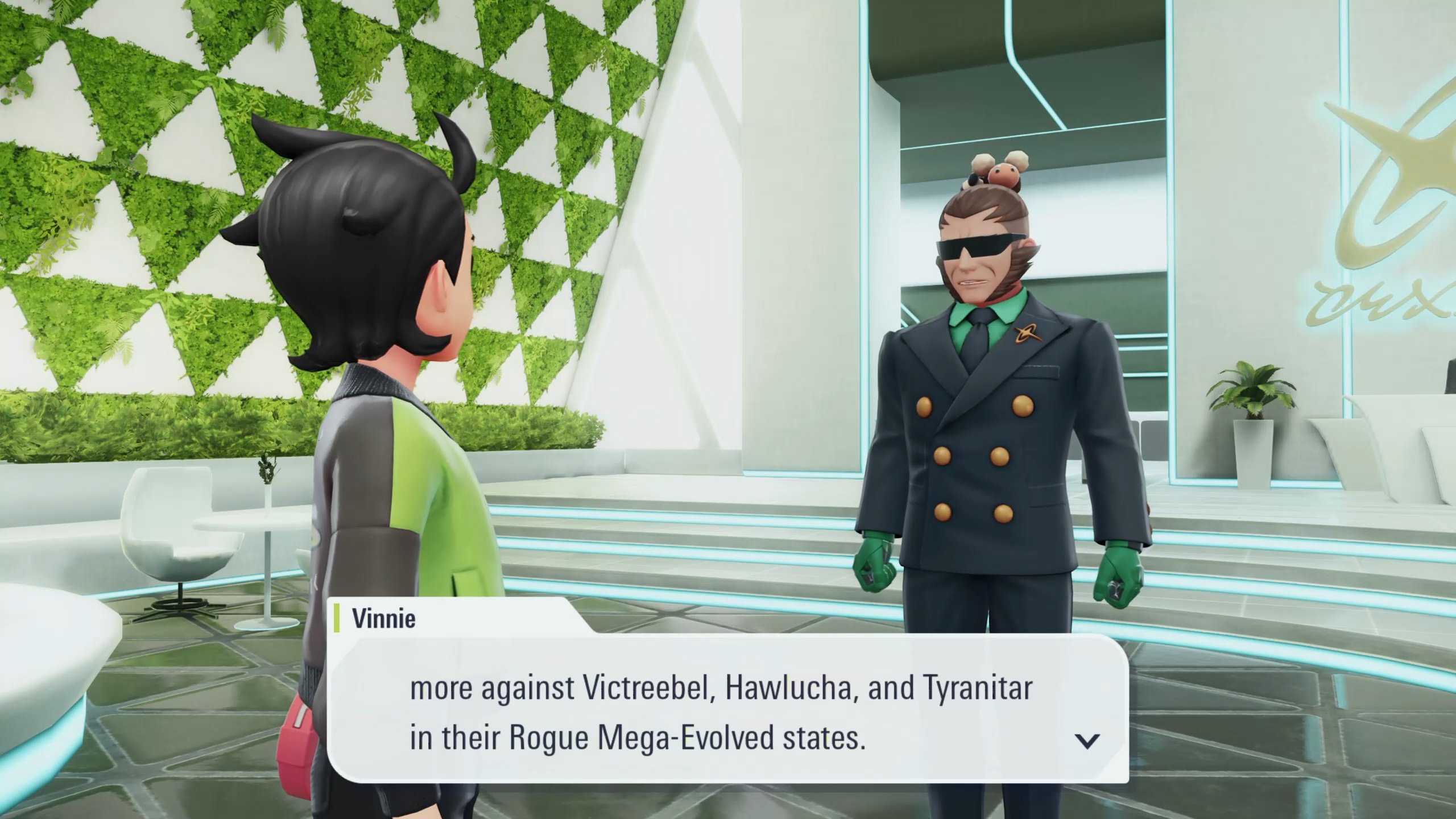 For Yveltal, you’ll have to head to Vinnie at Quasartico Inc. He’ll let you take on three Mega Rogue Evolution battles again, against Victreebel, Hawluca, and Tyranitar. These are slightly harder than they are in the main game, as you won’t have anyone with you, but considering the AI is pretty useless in the original versions of the fight, it’s not terribly difficult.