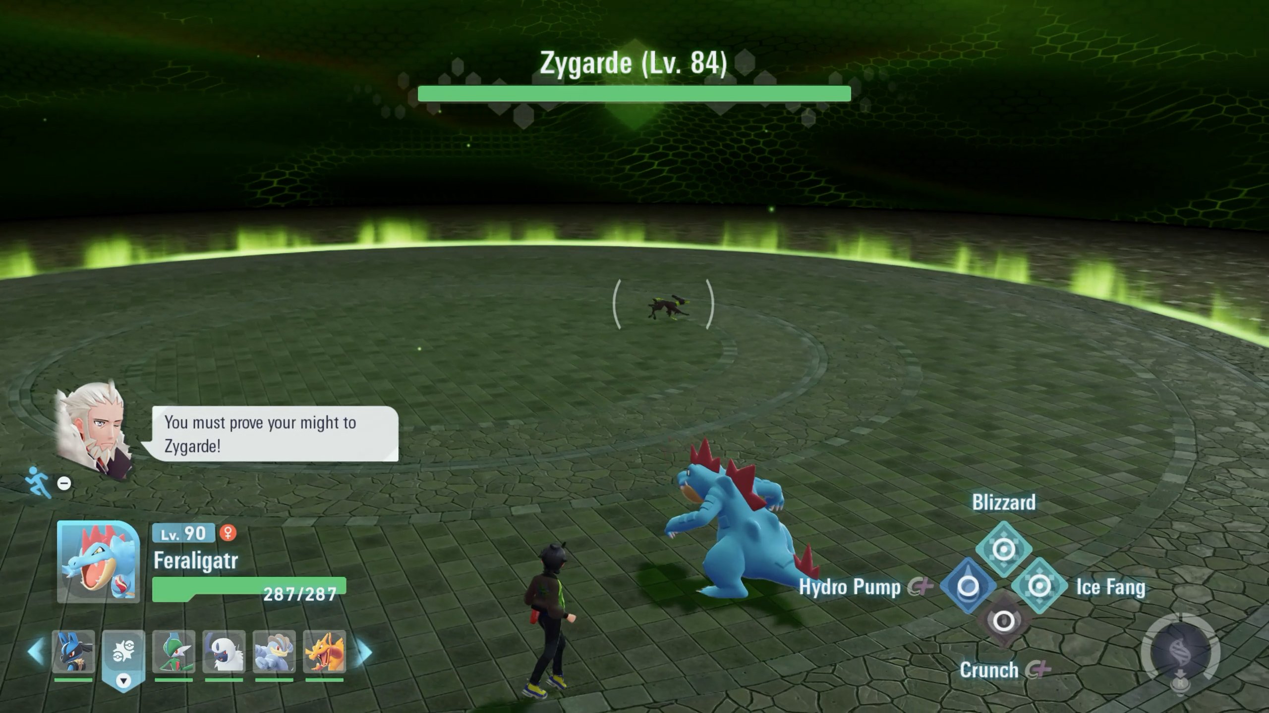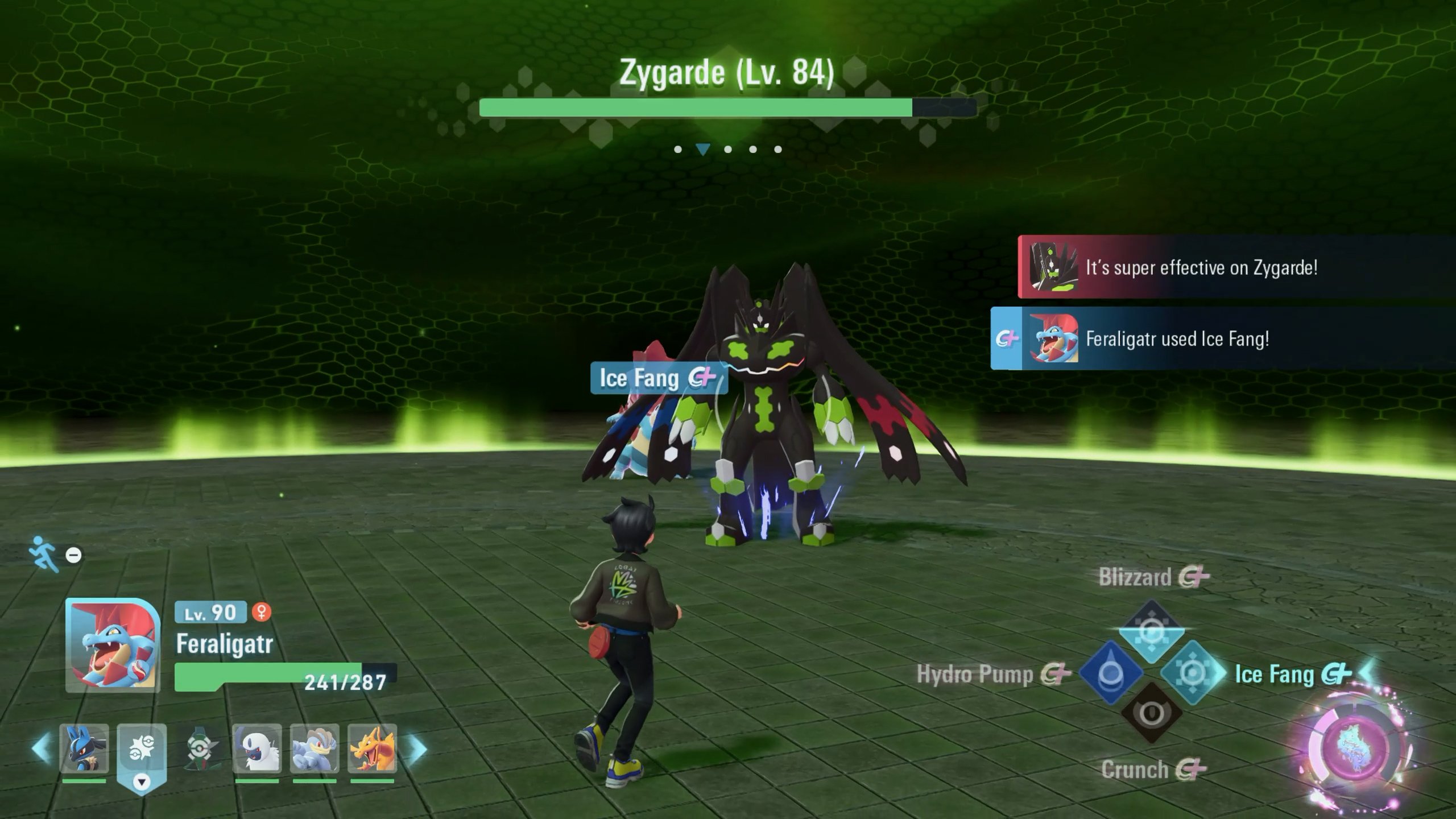 Similarly, one of Zygarde’s attacks will see large glowing green patches appear on the ground around the battle arena. You need to roll away from these as they happen, or you’ll take massive damage.