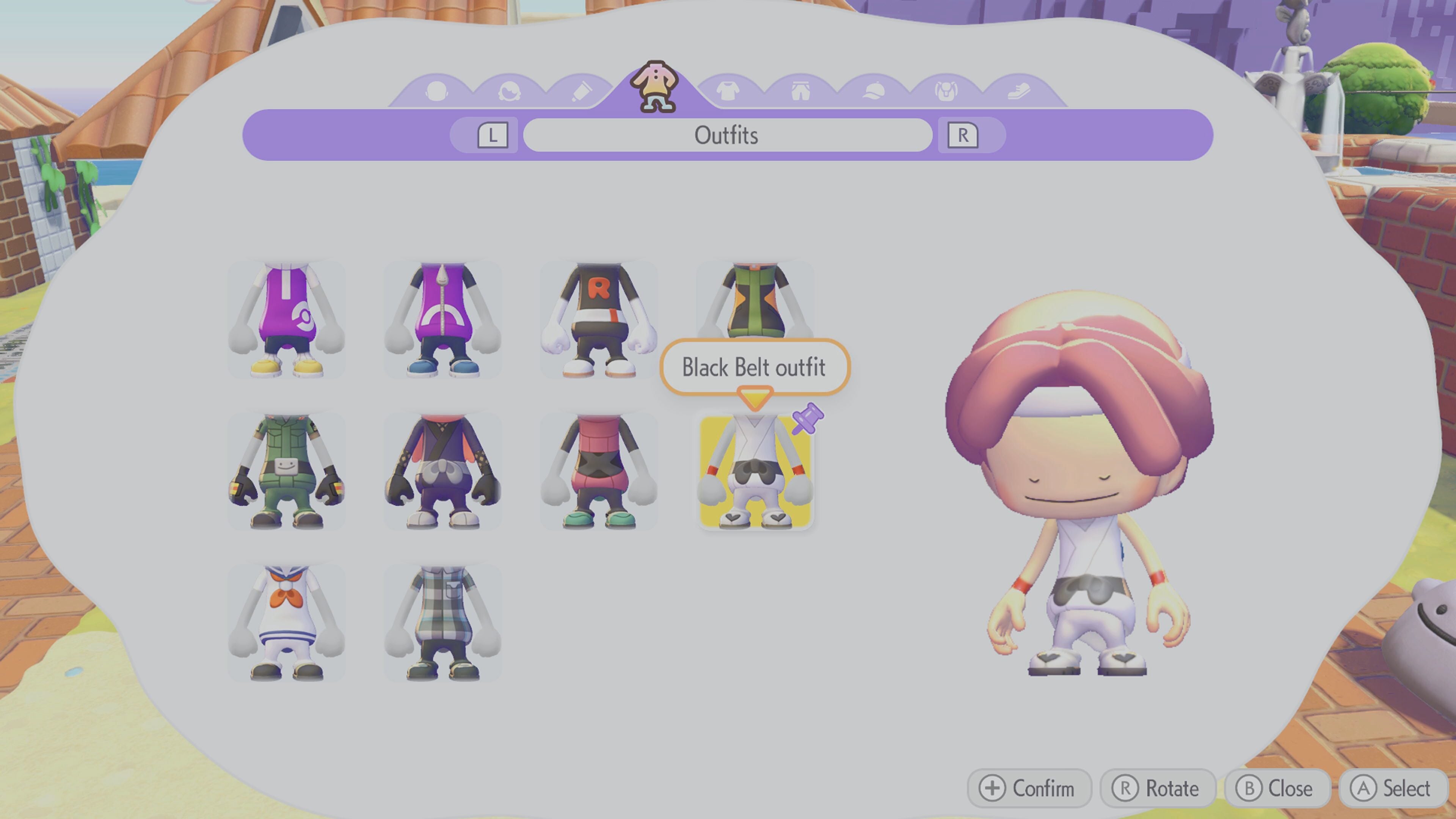 The Black Belt Outfit can be found at the back of the Sparkling Skylands. You’ll find this near where you repair the elevator for Alakazam as part of the main quest.