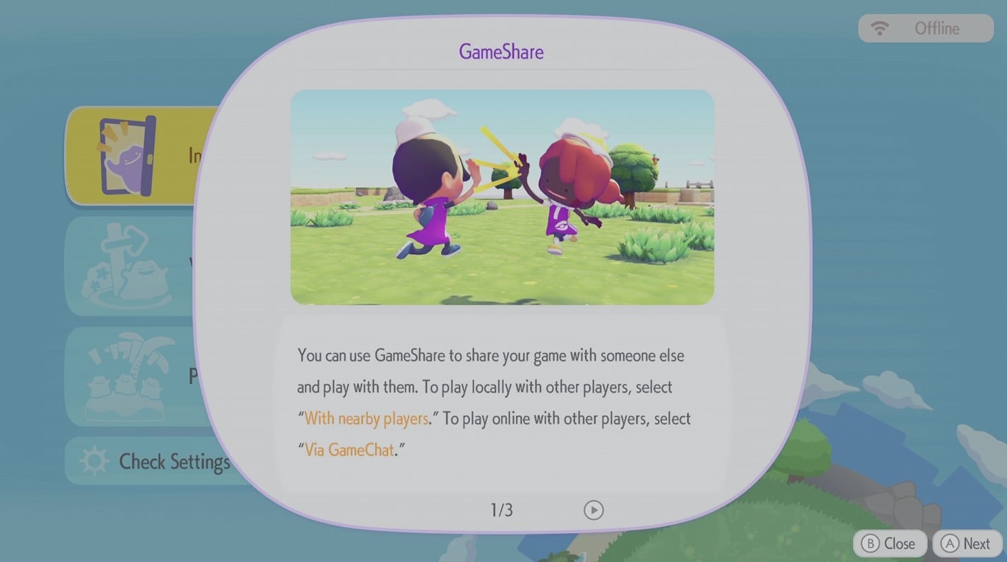Note: You are only able to play in Pallet Town in Game Share, and can’t travel to the other areas of the main game.