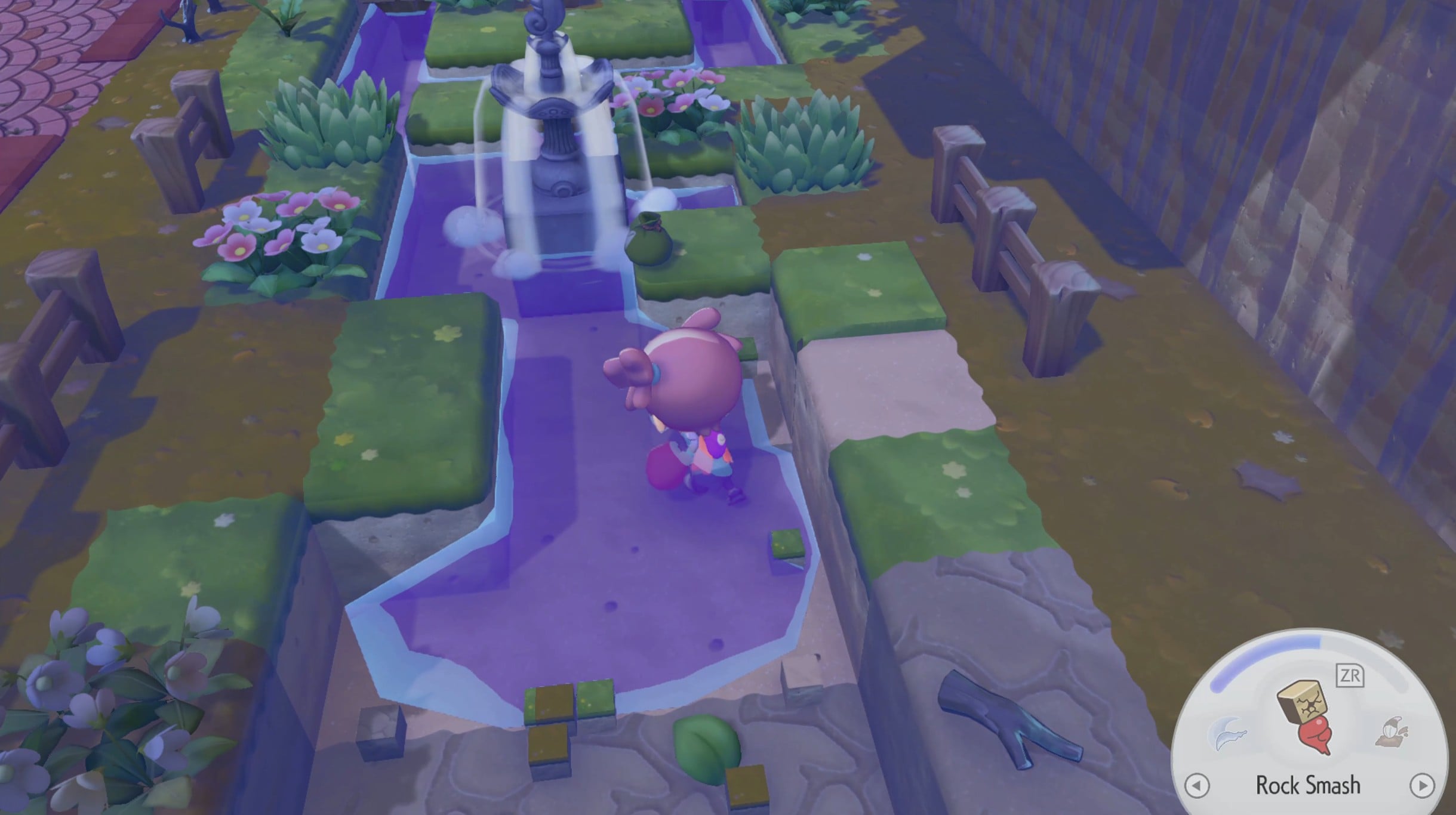 There are several ways you can do this. One of the easiest ways is to create ponds and other water features around the Pokémon Center. There is a water source to the back left of the Pokémon Center (in the image above) that can become a water feature after you’ve destroyed the corresponding blocks.