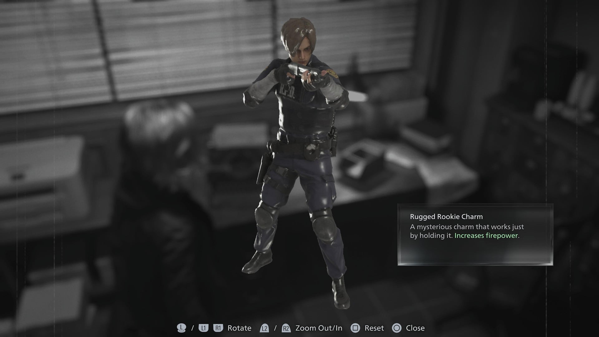 The Rugged Rookie Charm is a plastic model of RE2 Leon that Grace can acquire. You can only unlock this charm by clearing the game once and buying it from the Special Content shop for 6500 CP.