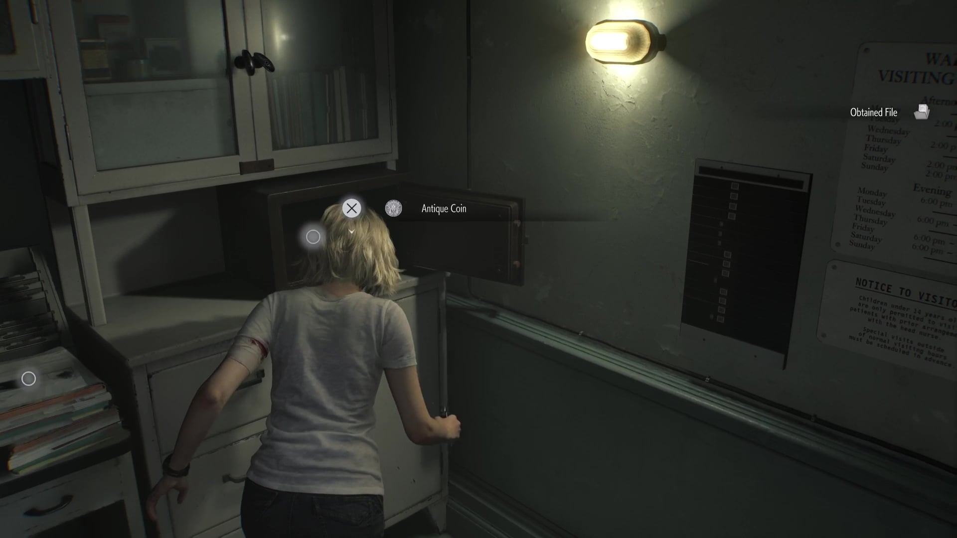 The safe in the Examination Room has three more Antique Coins, so make sure to backtrack when you get the safe code.