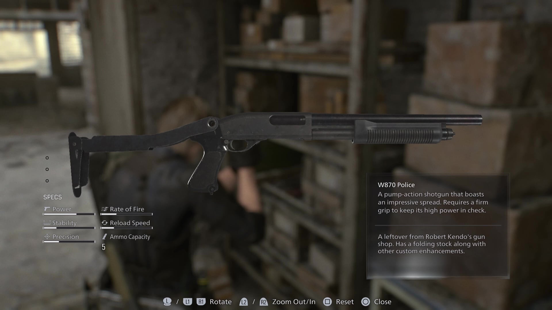 The W870 Police is my choice for the best shotgun in the game, especially when paired with the Cute Bear Weapon Charm, which can be found nearby. It’s got high firepower, and it can be upgraded for a competitive rate of fire and reload speed, too. You can find this shotgun in Gun Shop Kendo on a shelf, shortly after Leon’s flashback cutscene.