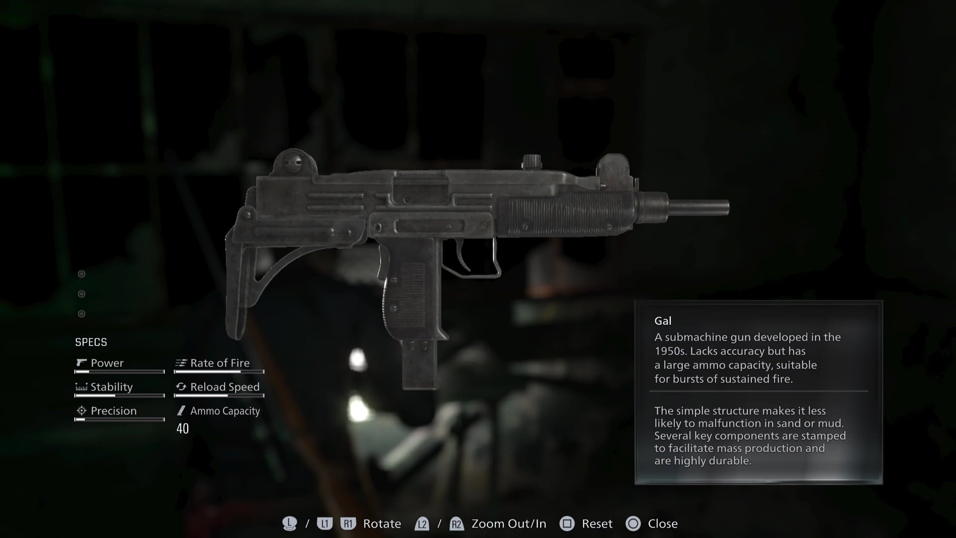 If you want to pick up an SMG instead of buying one from the item box, the Gal is a decent option that fires incredibly quickly. You can find this gun in the Underground Parking Garage of the Cedarbrook Apartments building — we cover all of this in our full Leon Raccoon City walkthrough.