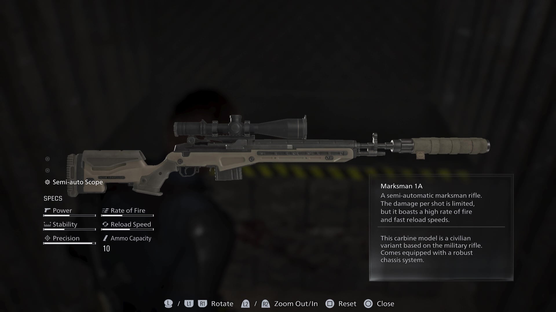 While still exploring Raccoon City as Leon, you’ll find the BSAA Container Key, and this will allow you to start opening up BSAA Containers — we have a guide to help you find all BSAA Container locations right here. You’ll find that BSAA Container 03 includes the Marksman 1A sniper rifle, a powerful semi-automatic rifle that might have slightly less firepower than its bolt-action brother, but it makes up for it in speed and precision.