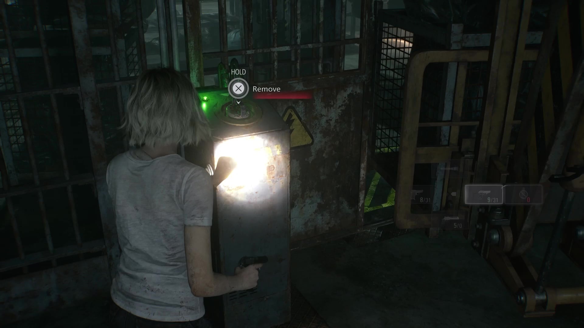 Regardless of which you choose to go for first, you must keep The Girl distracted or keep a distance from her, to ensure she doesn’t stop you from restarting any of the power distribution units. A shot from the Requiem will work wonders to stop her from chasing you, if you’ve saved enough ammo. There are also standalone lamps and lights in the area, which you can use to stop her in her tracks.