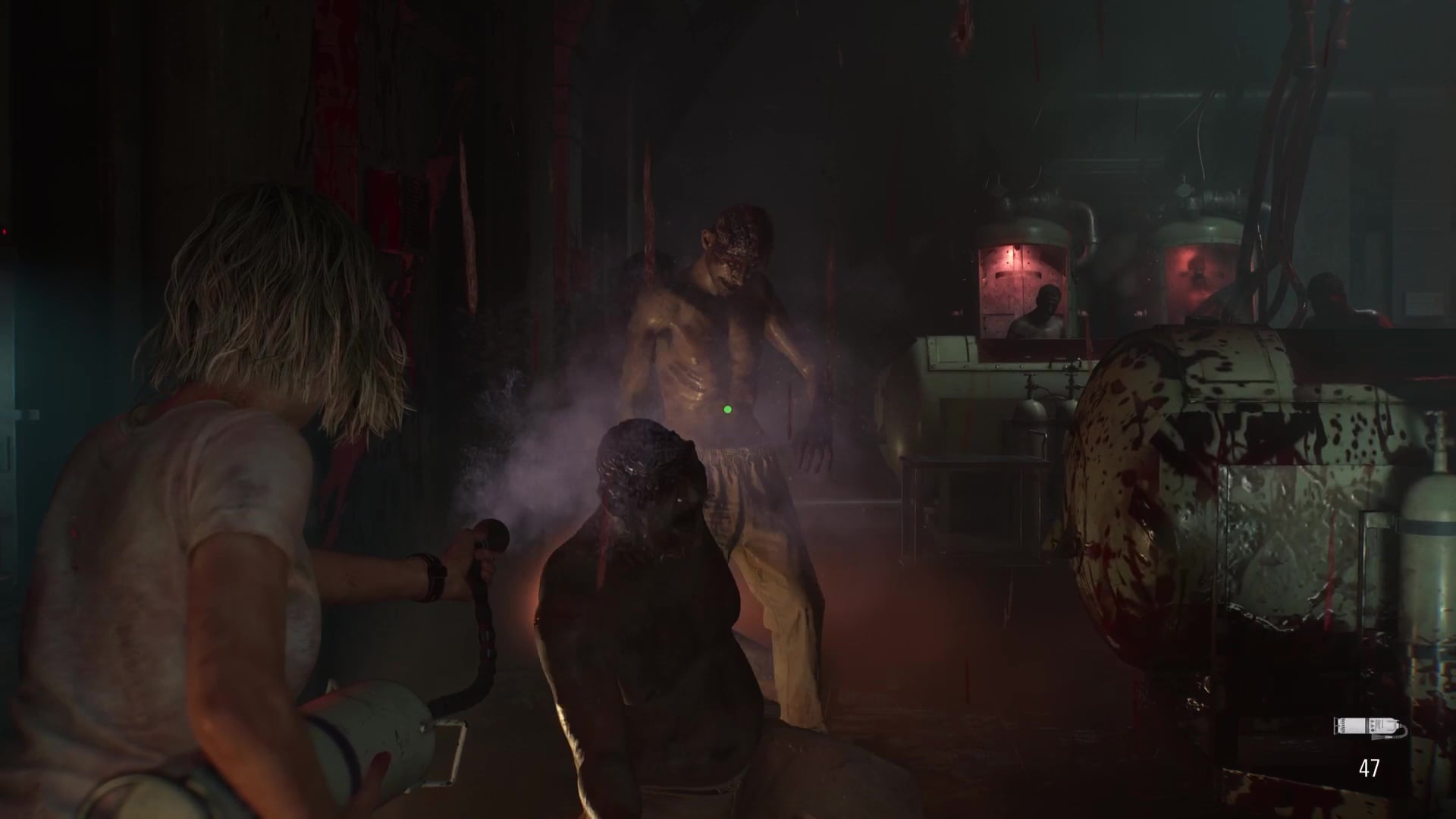 You’ll now need to evacuate the lab ASAP. The good news is that a door unlocks to give you a shortcut back to your Reception safe room. The bad news is that the Elevator is broken, meaning you need to find a way out through the Collection & Testing room, which is now filled with zombies. You can use the fire extinguisher-like Disposal Tanks in the room to take care of zombies when the crowds become too intense.