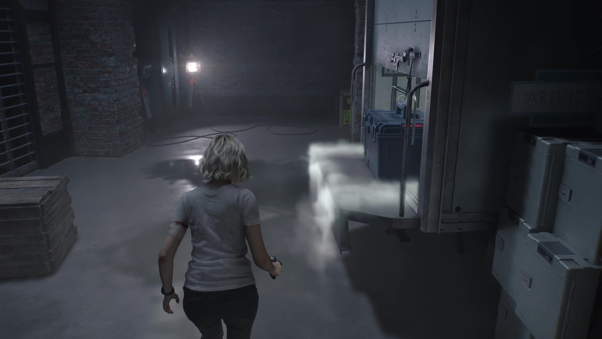 Move back down the corridor toward where you came from and turn right into the Prep Room. You can move a large trolley in here to climb up and reach a toolbox on a shelf in the upper-right corner of the room. You will be chased by The Girl, and must move to a room with lights in to avoid her.