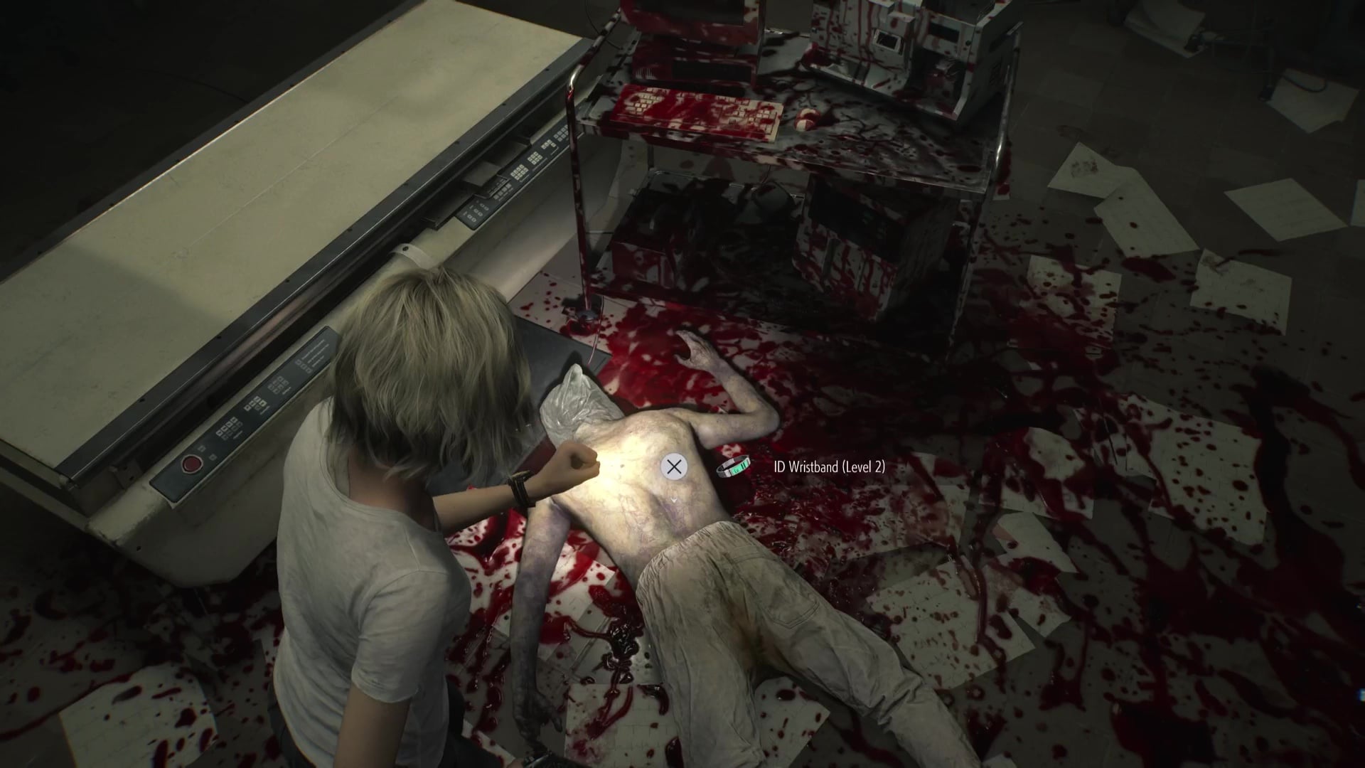 Take both Artificial Organs to the Examination Room where you found the organless corpse from before, and insert them into its body. The corpse will reanimate, but don’t bother fighting it. After flailing about, it will collapse onto the ground, where you can get the ID Wristband (Level 2).