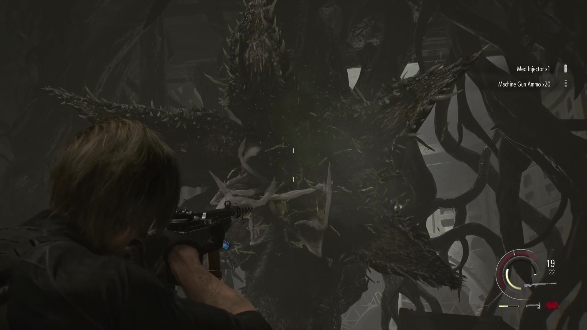 The main Plant 43 boss fight is pretty self-explanatory. You need to unload your most powerful ammo into the large flower when it’s open, and avoid the slamming attacks from its tendrils. Eventually, the monster will knock over a container of explosives just behind it, allowing Leon to burn it up, uncovering the ARK entrance.