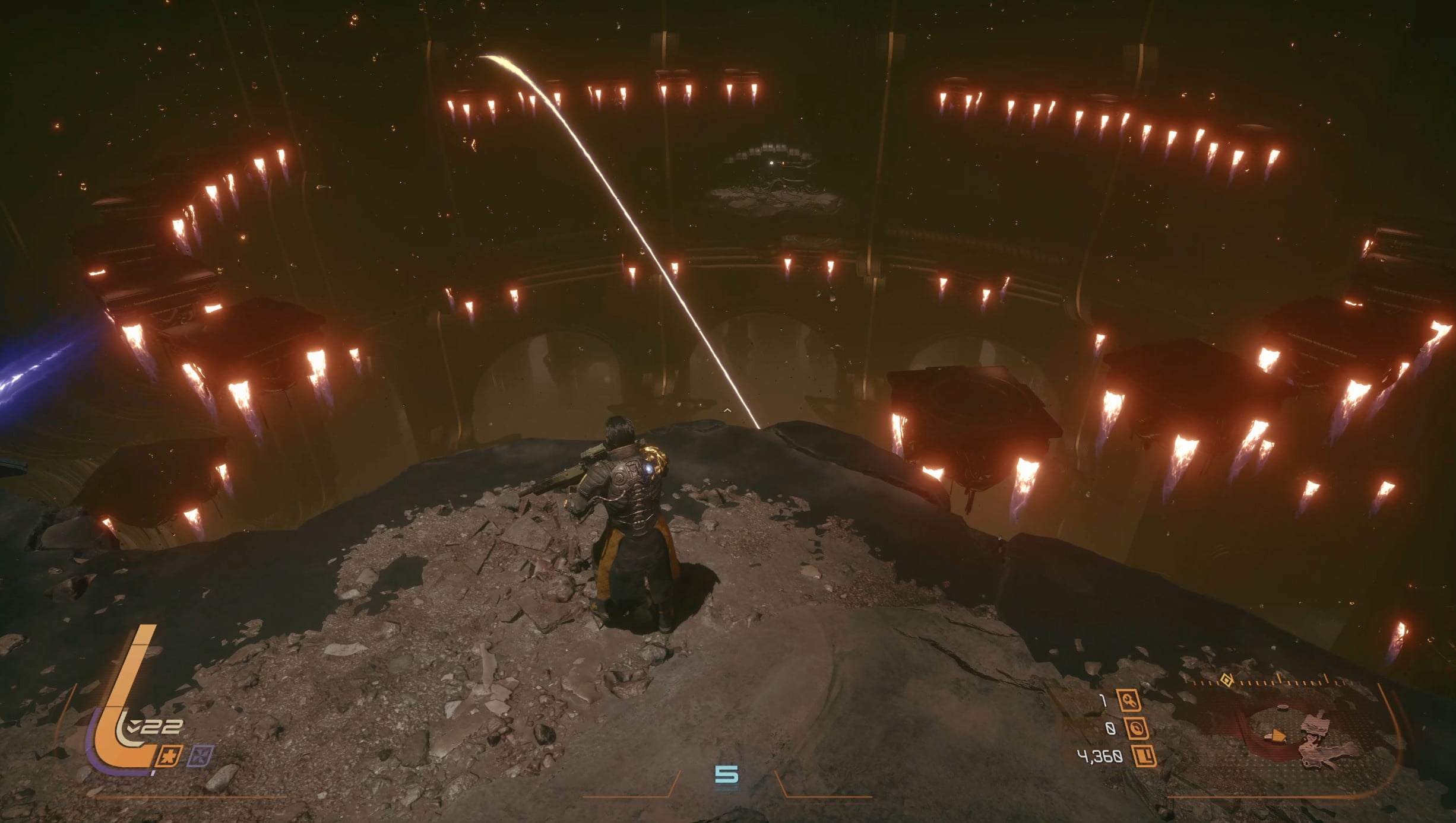 At the start of phase 2, Architect will slam the ground and send you flying. Grapple onto one of the points of the arena.