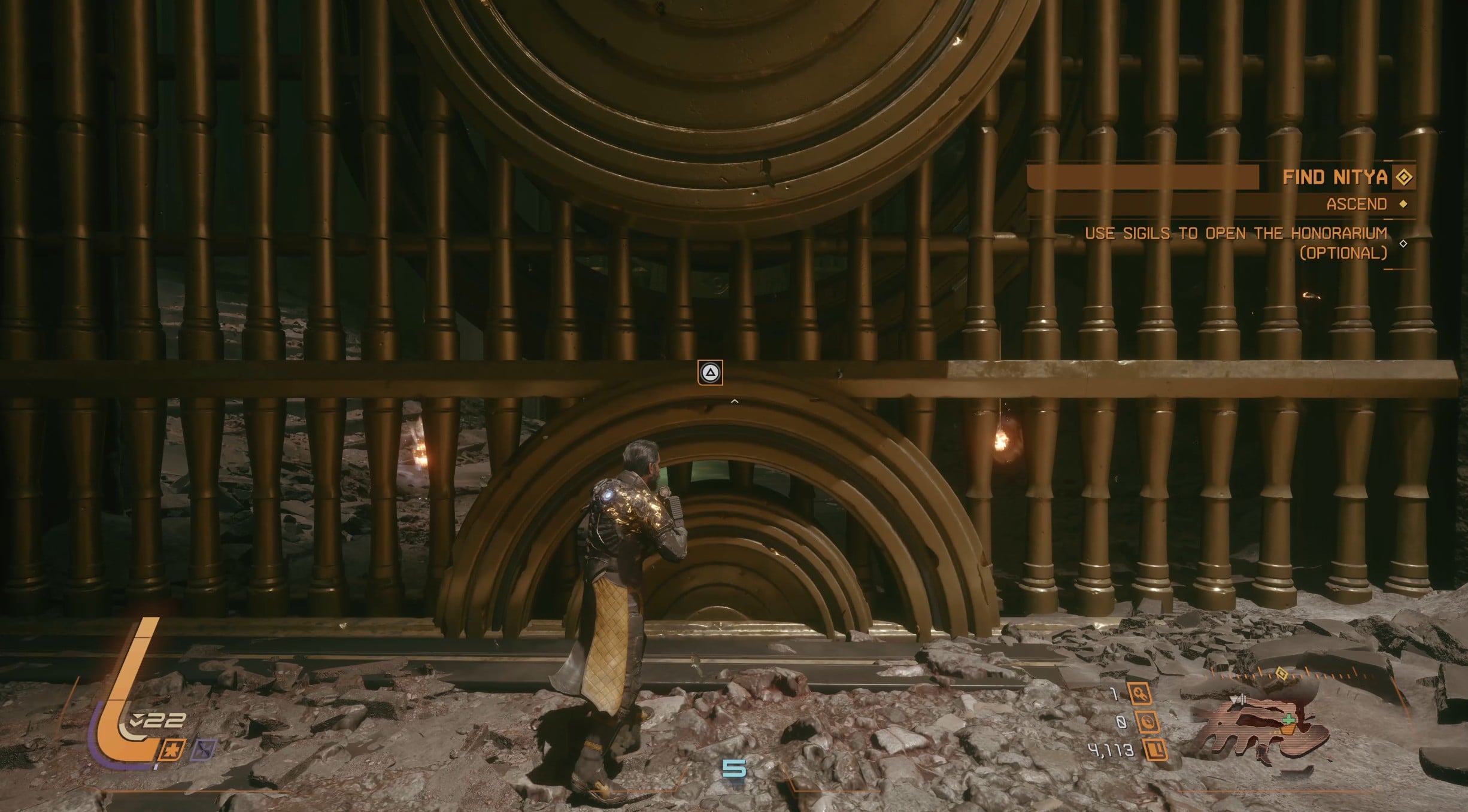 Just before you face the boss of the Desecrated Fortress, you’ll see that your objective has been updated to “Use sigils to open the Honorarium.” The large door you can see pictured below is the Honorarium.