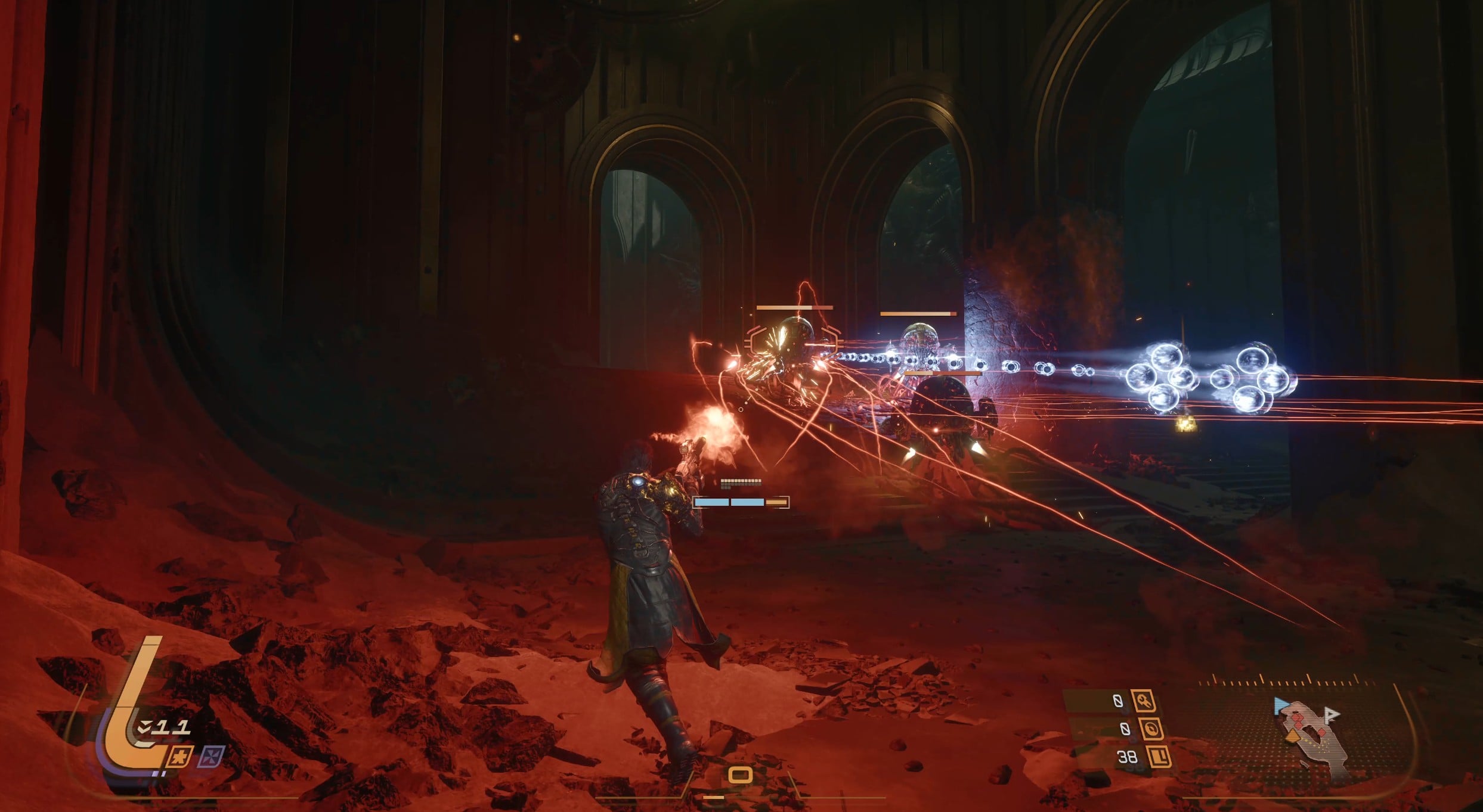 - In the third phase, Architect will fire rings of yellow projectiles.