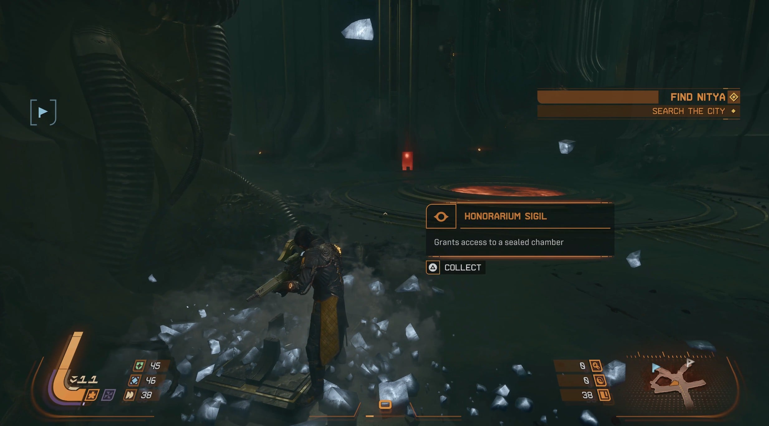 You’ll quickly come across one of the new mechanics for the Desecrated Fortress biome, the Honorarium Sigils. These are random drops that are exclusive to the Desecrated Fortress. They can appear as ground loot, or from containers that you open during your run.