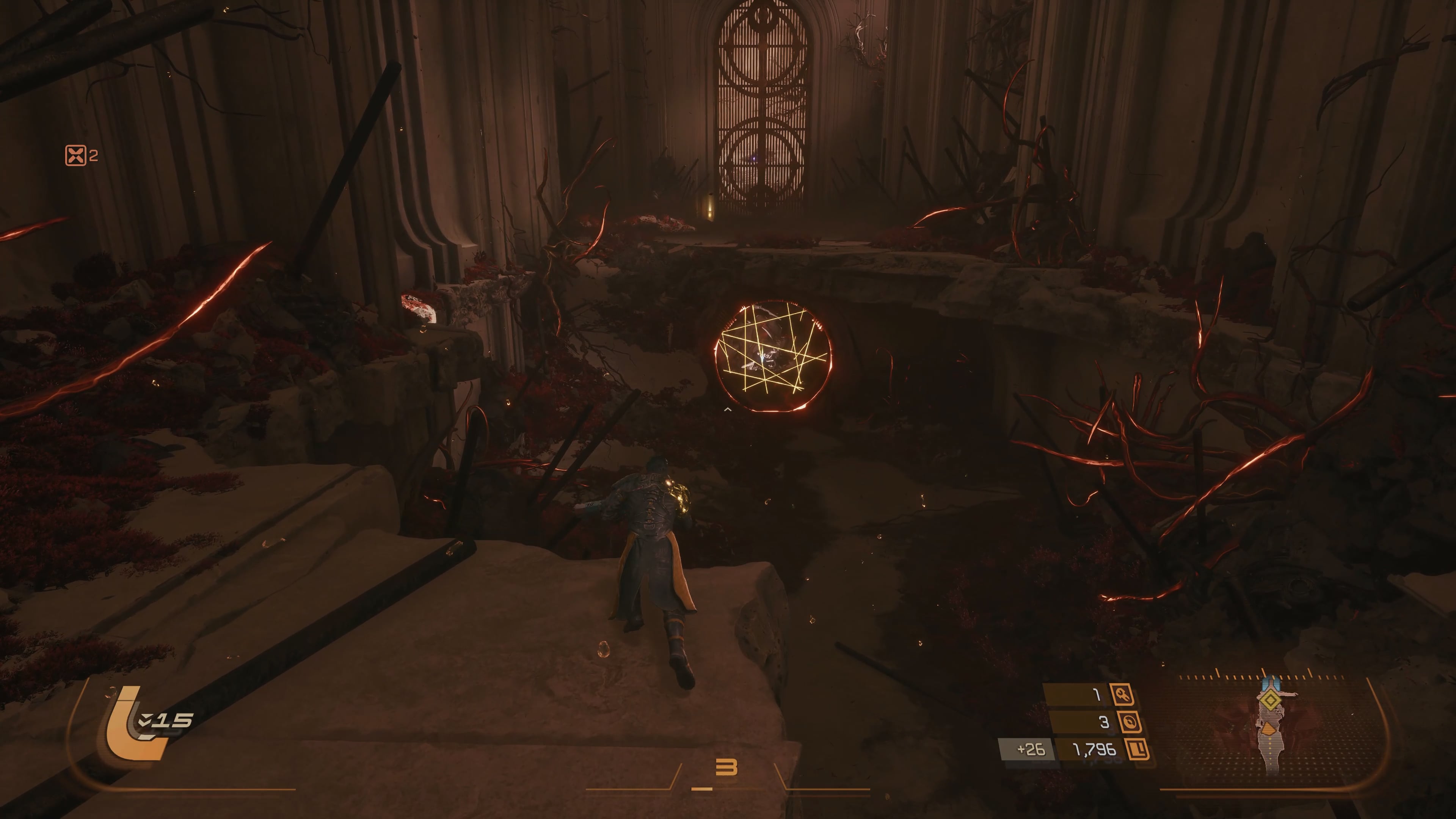 Touching this will trigger The Eclipse, which changes the world around you and makes enemies much tougher to deal with. They are more aggressive and can now shoot yellow projectiles, which can corrupt Arjun.