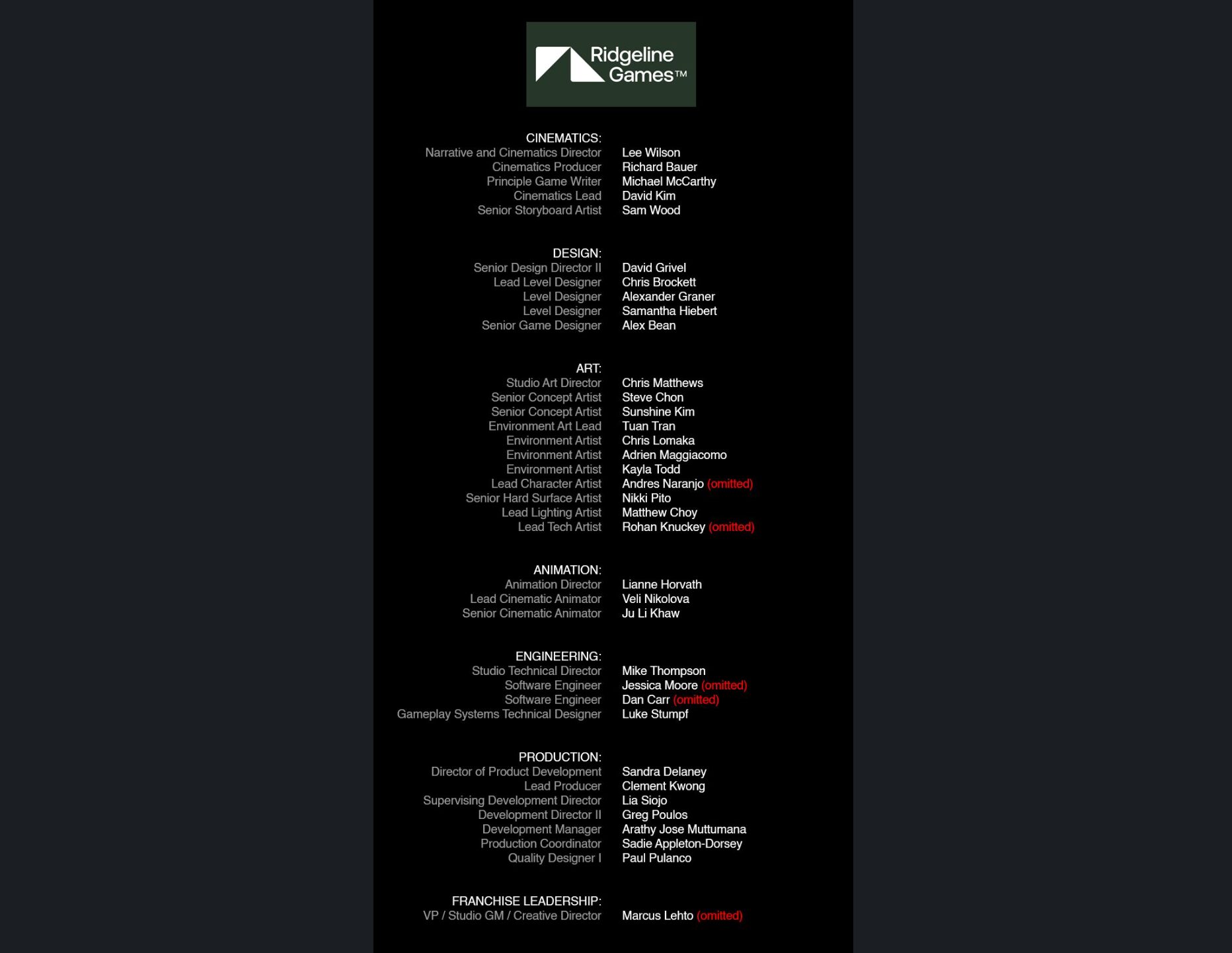 Sharing an image listing the staff he believes should have been credited in the game, Lehto added: “Out of respect for my colleagues and the awesome work they poured into this project, I want to take a moment to properly recognize them — listing their names and roles as I would have preferred them to appear in the credits.