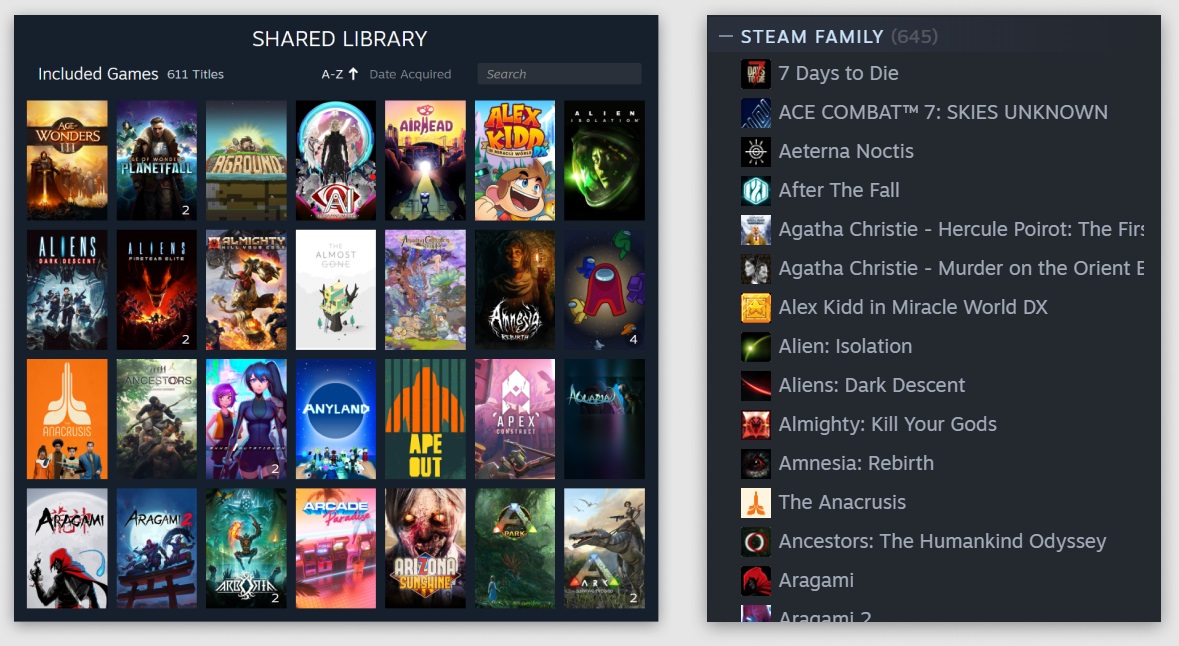 Players can create a Steam Family group for up to six members, which can be managed from the Steam client, a mobile device or web browser.