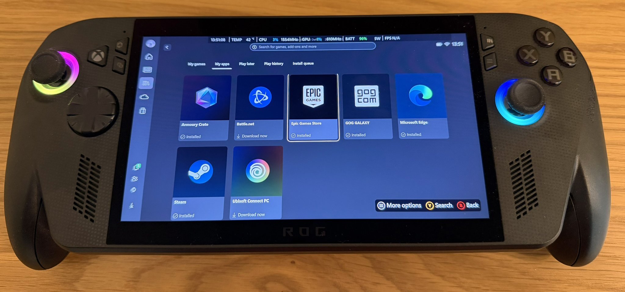 The one thing that differs from the Xbox app on PC is that the ROG Xbox Ally version adds a new option called My Apps. By selecting this, you can choose to install separate apps for Steam, the Epic Games Store, GOG, Ubisoft Connect and Battle.net, and once installed you can boot these for similar full-screen front-ends.