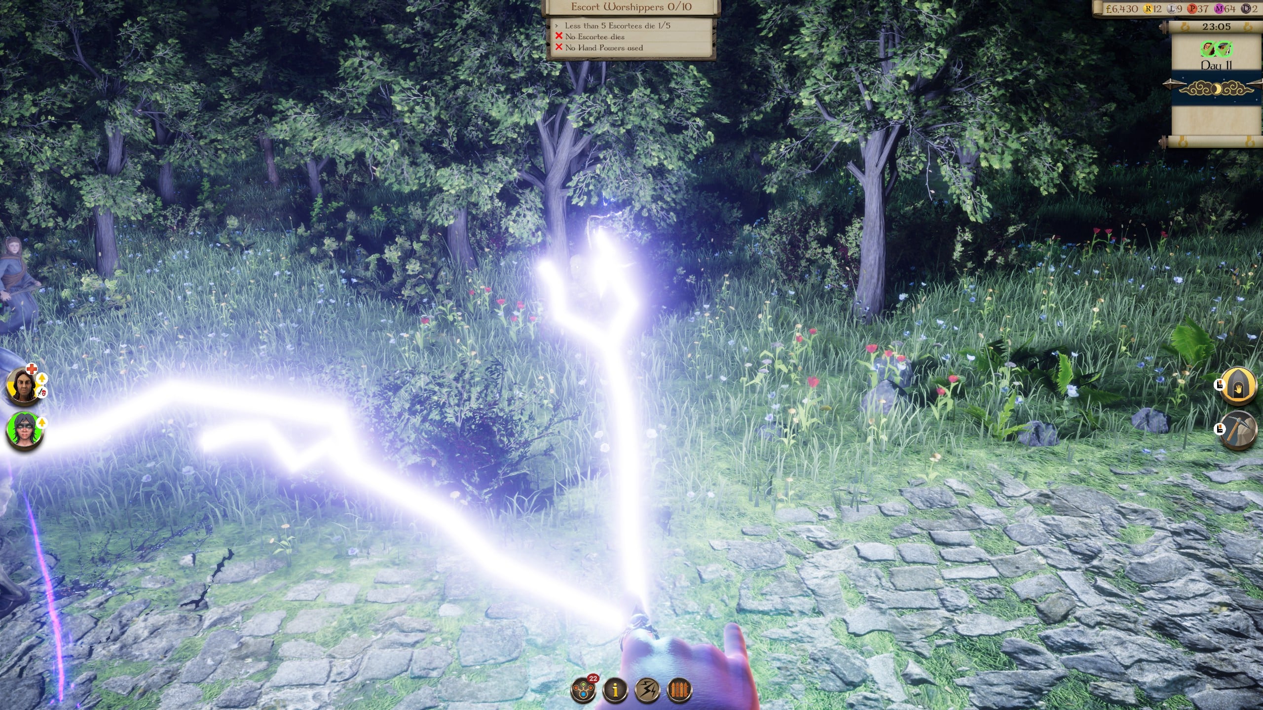 Naturally, the most satisfying part of the game is the smiting, and I suppose it’s where the influence of Black & White is most evident, with your powers represented and delivered via a floating rubbery hand. Yes, of course, it’s a glorified mouse pointer, but it’s one that does an awful lot of heavy lifting – pun intended. It represents the player, but it subconsciously connects all the aspects of play that could otherwise feel disparate.