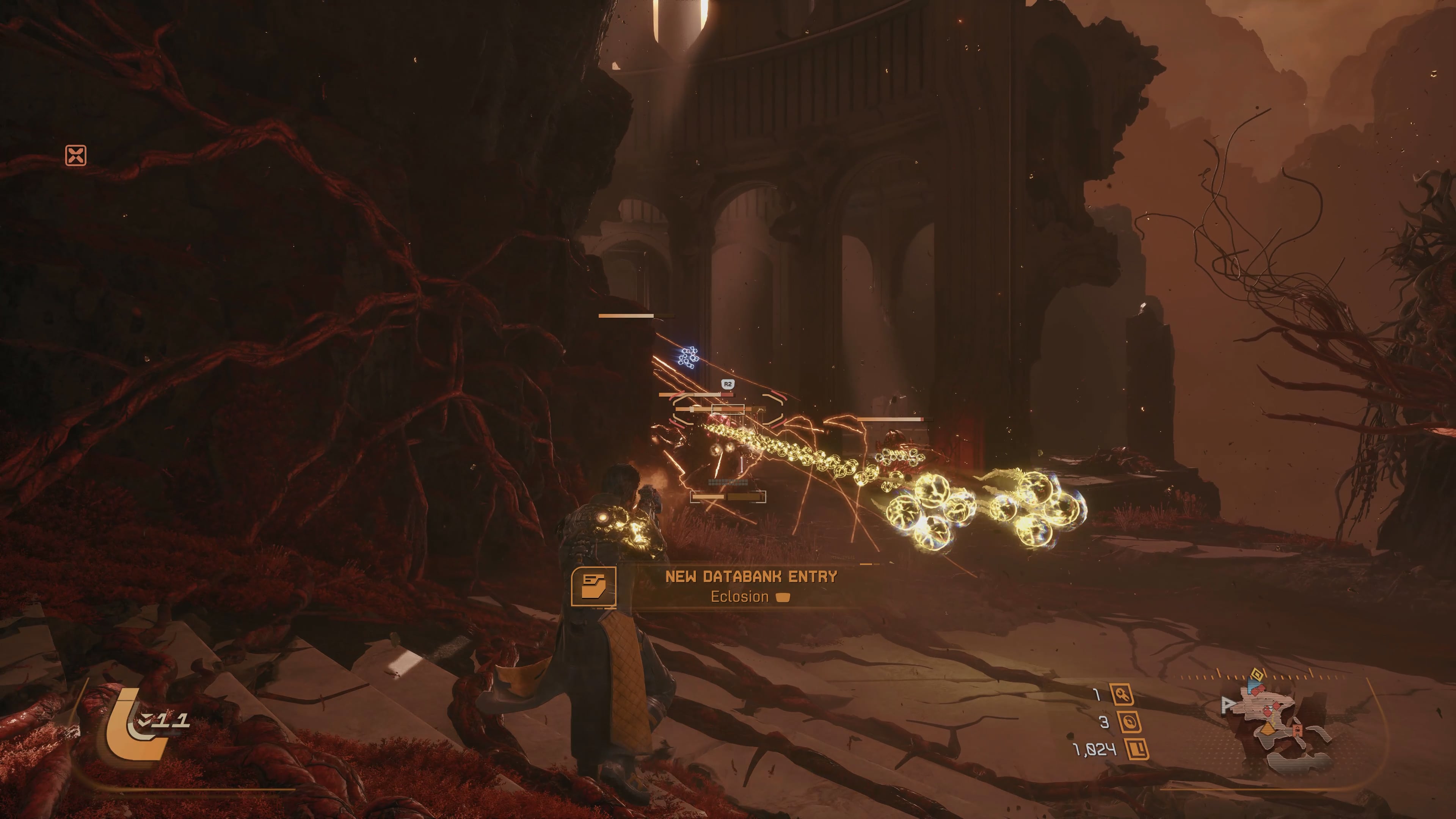 All of this is hung on Rahul Kohli’s exceptional performance. It’s a performance that feels destined to earn a swath of award nominations. While he enjoys more co-stars than Returnal’s protagonist, Selene (including Selene’s actress Jane Perry, who provides a memorable turn as one of Arjun’s crew), Kohli spends the vast majority of this game playing off of himself. I’d have enjoyed more time spent with the crew, especially given the novelty of a much larger cast this time, but what I did get was very engaging. Most of it is totally missable if players just want to get back out there, but for Housemarque lore nerds like myself, there’s plenty to dig into.