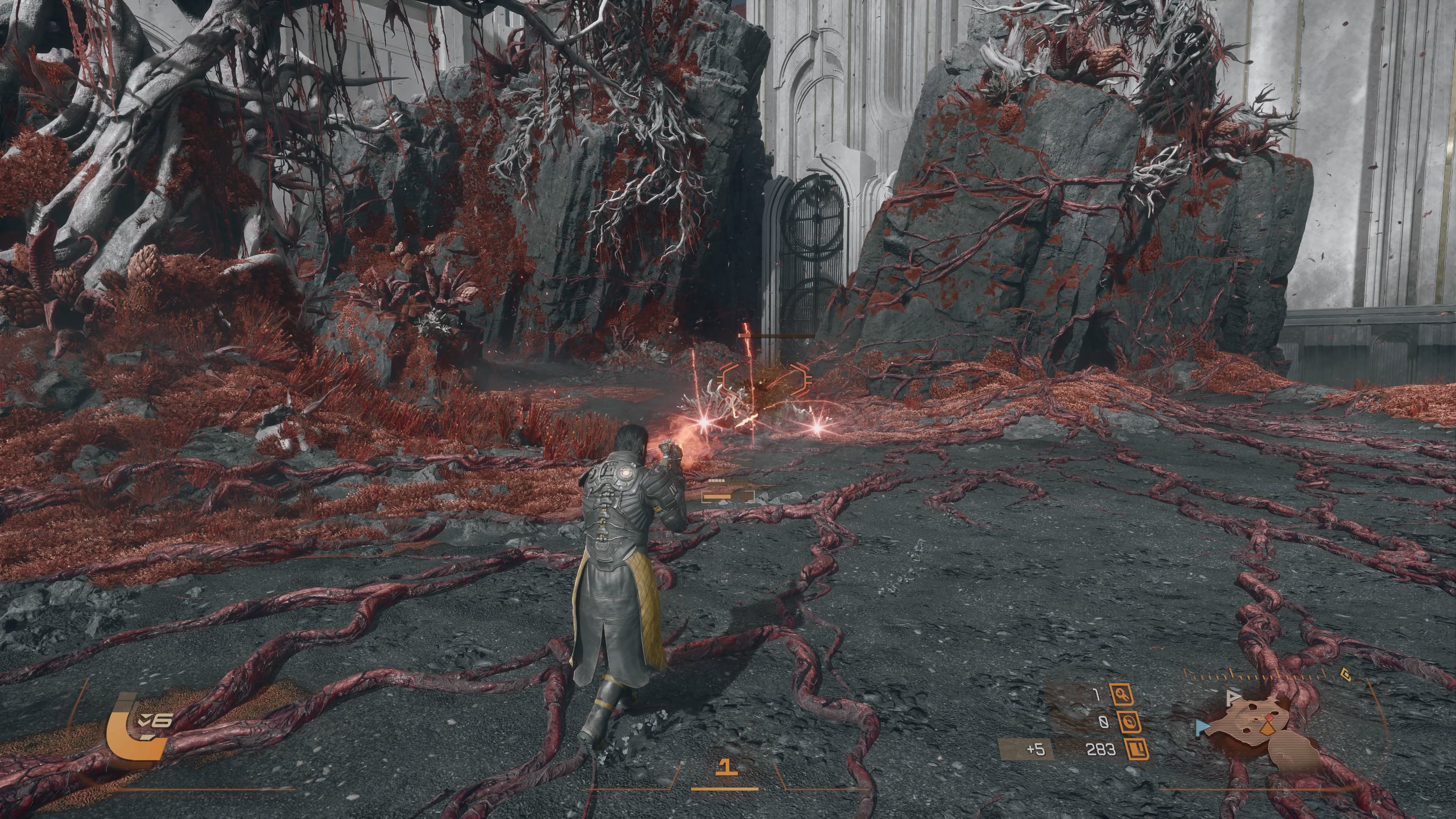 Saros is still an extremely tough game, and plenty of bosses gave me a FromSoftware level of satisfaction to overcome, but it’s certainly a less intense challenge than Returnal. As you progress through the world, and the standard of enemies gets tougher, the game’s soundtrack kicks into higher gear.