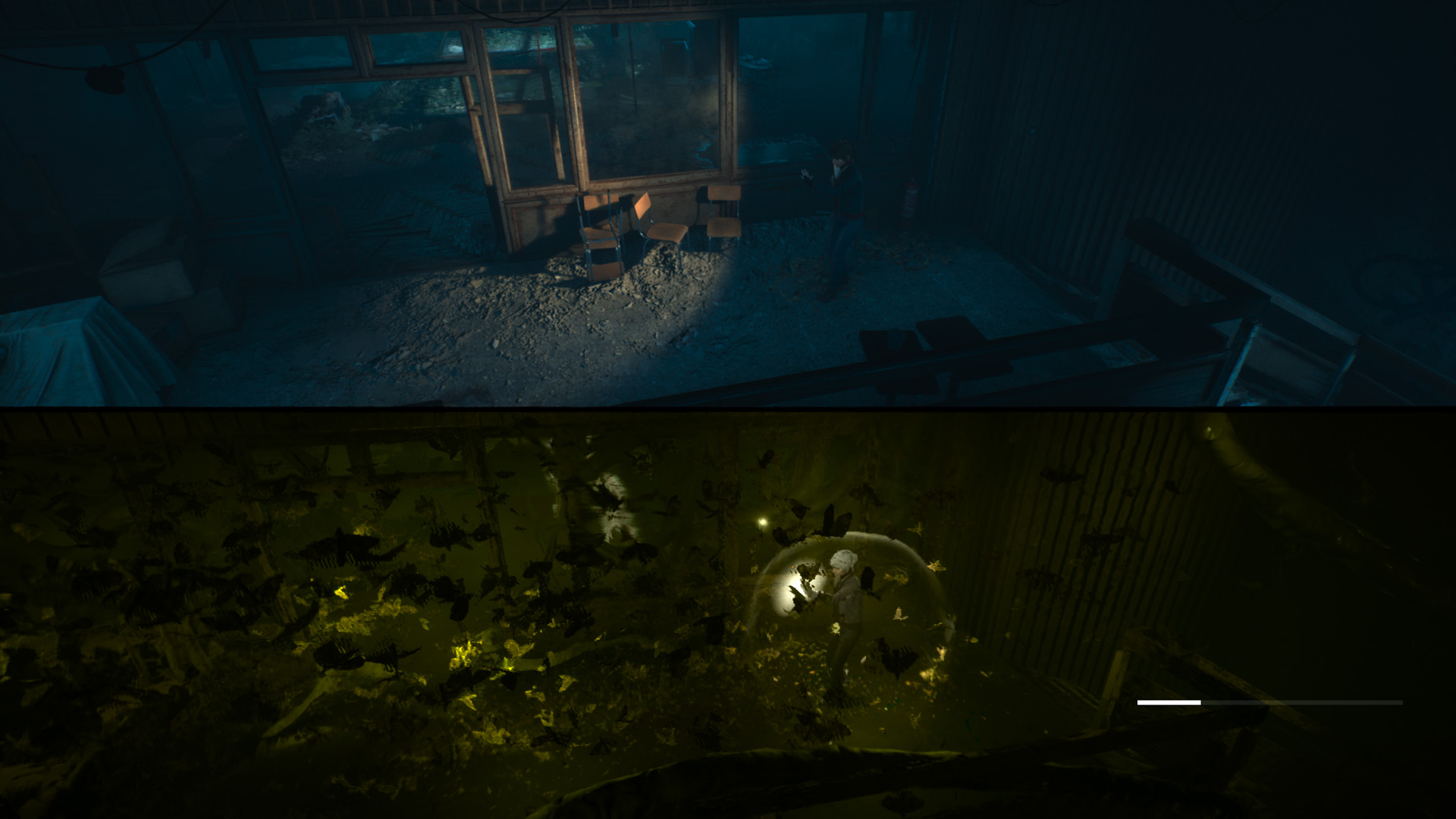 If the horror falls a little flat, the promise of some interesting puzzles using the spirit world mechanic also ultimately fails to deliver. It’s certainly an extremely clever device and Bloober Team occasionally has fun with it – dividing the screen in different ways, giving each screen a different camera angle during cut-scenes and the like – and for the first half of the game there’s enough variety in the problems you have to solve using the two-world method to keep you busy.